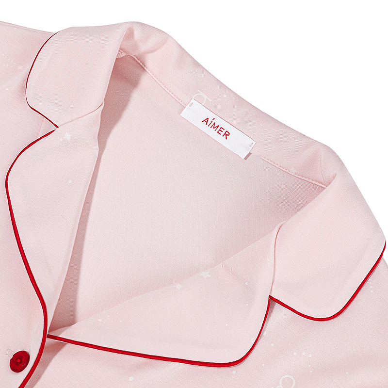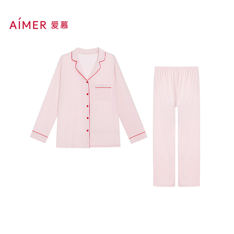 📚 爱慕正品春夏季牛奶心情翻领睡衣套装女士长袖开衫家居服AM46A831
