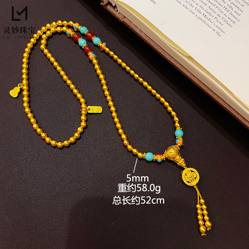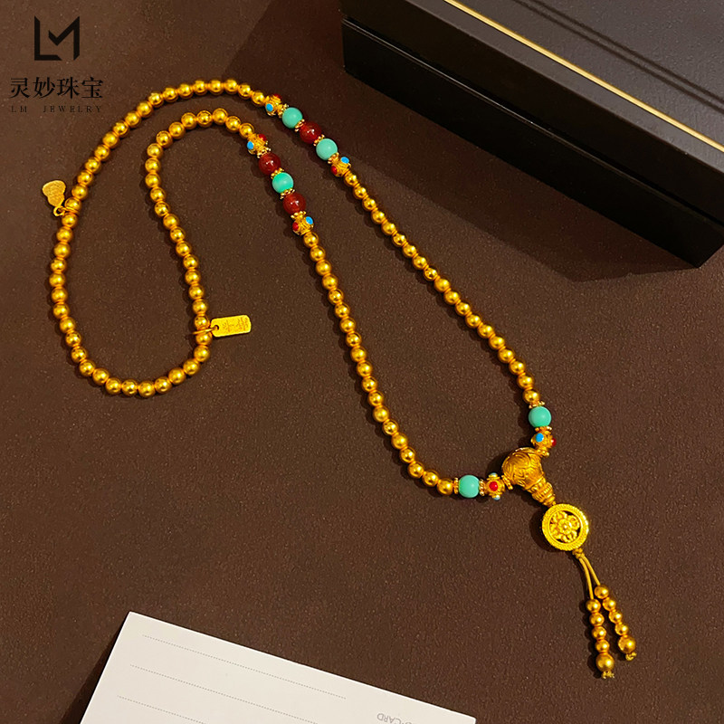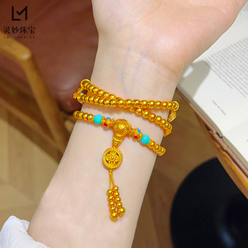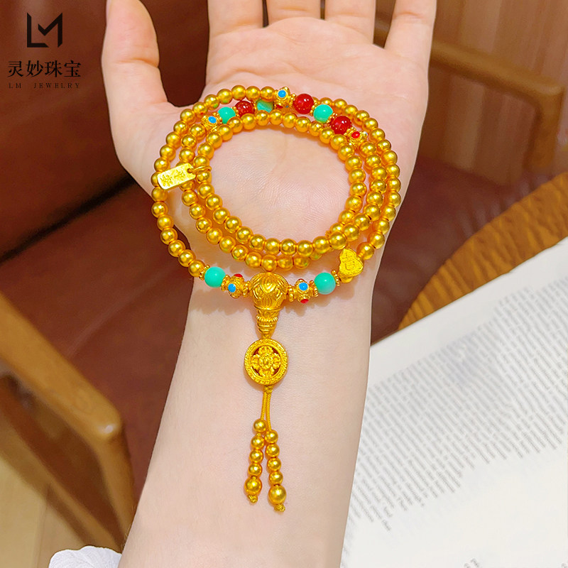 📚 新中式沙金古法金刚杵佛珠文玩三圈手串莲花三通绿松玛瑙手链女