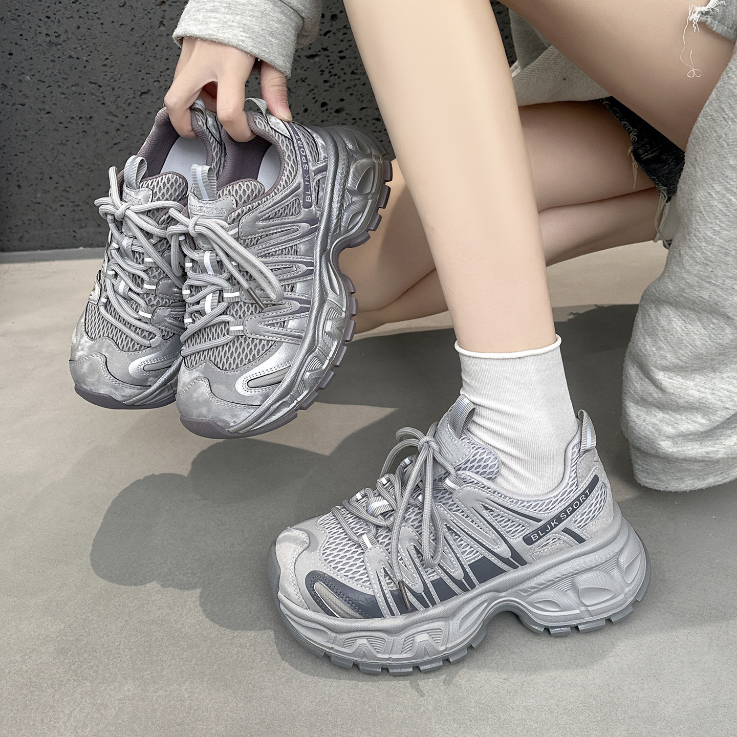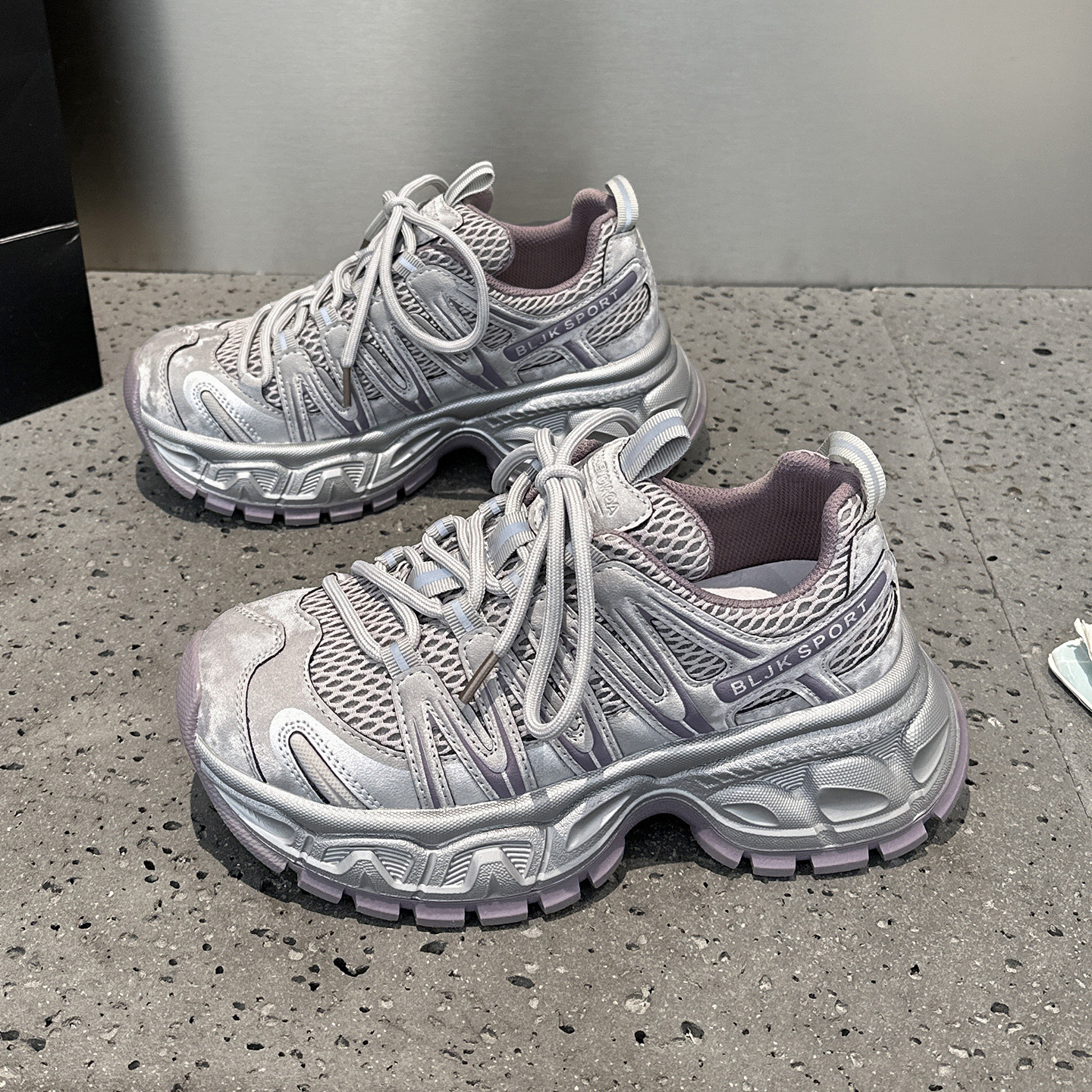 📚 真皮网面老爹鞋女2026春季新款复古巨好看厚底轻便休闲运动跑步鞋