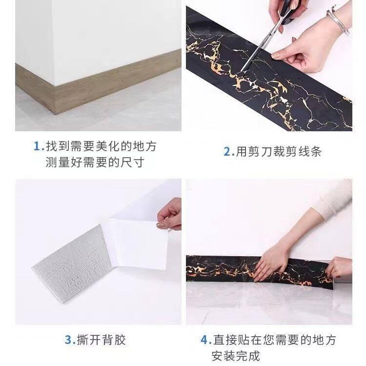 📚 踢脚线自粘pvc地脚线墙贴客厅阳台墙角线楼梯贴脚线瓷砖腰线贴纸