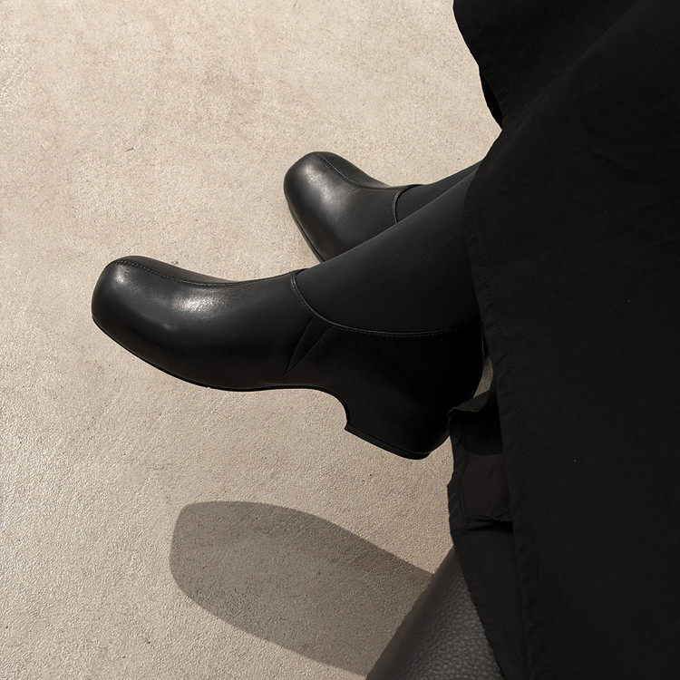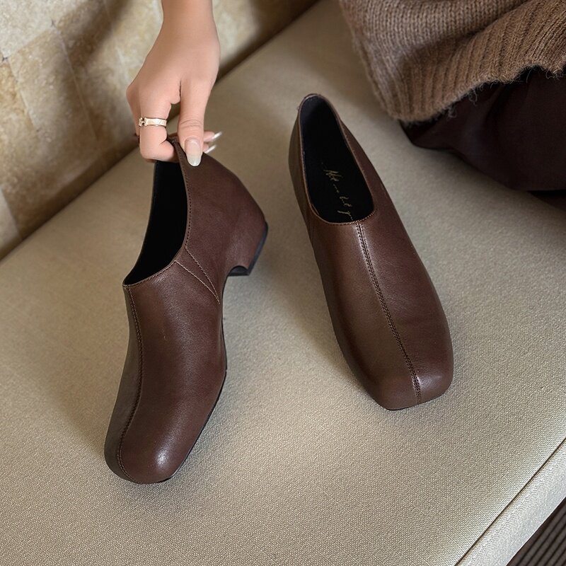 📚 4.5cm时尚内增高单鞋方头一脚蹬牛翻皮小皮鞋2026早春简约懒人鞋