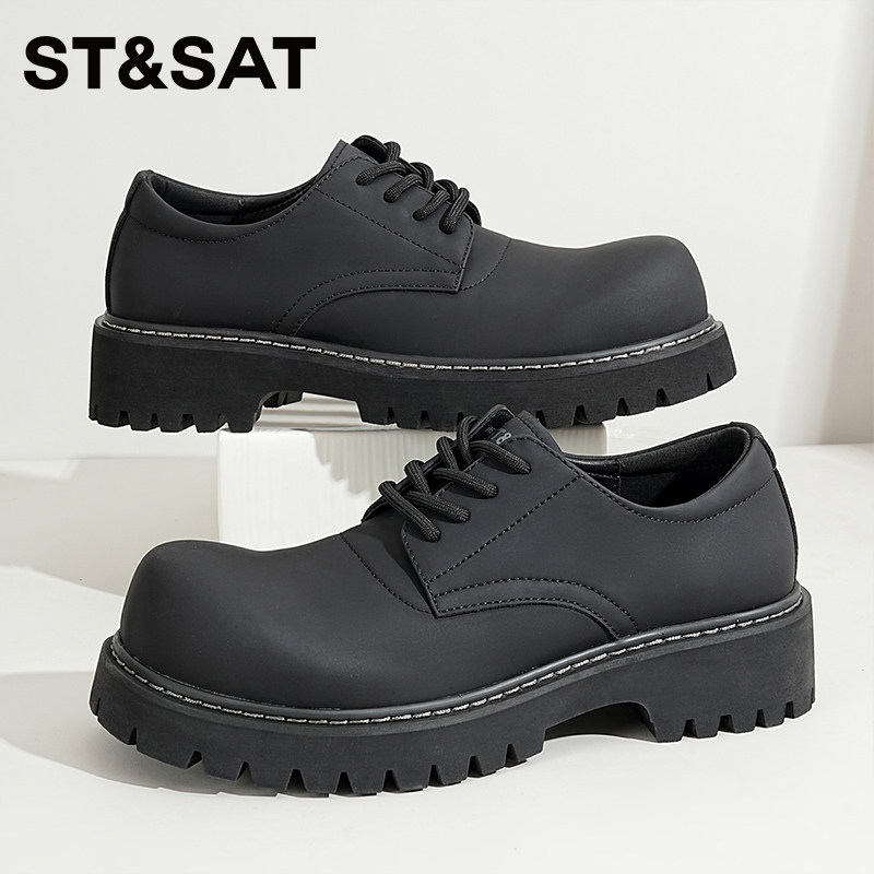 📚 星期六厚底德比鞋男款2025新款英伦风大头鞋男士休闲皮鞋增高鞋子