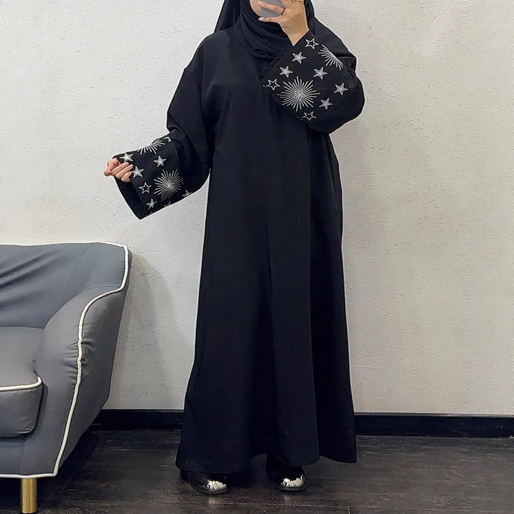 F432外贸迪拜阿拉伯刺绣绣花长袍时尚Abaya长袍长裙现货