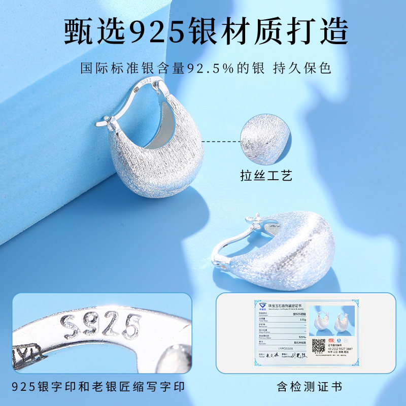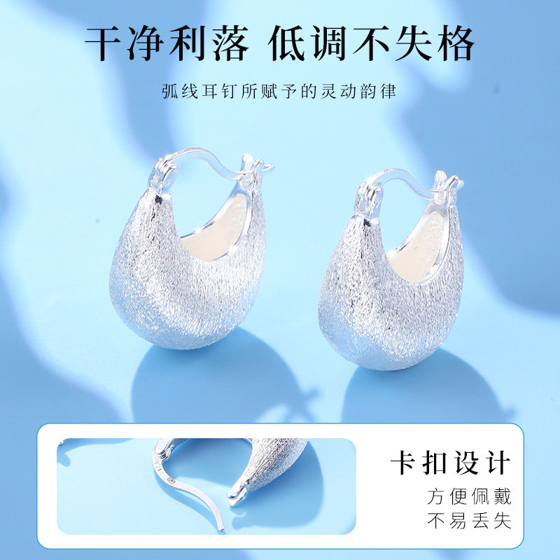 📚 老银匠s925银耳钉通体银冷淡风高级感小众设计纯银耳圈银耳扣耳饰