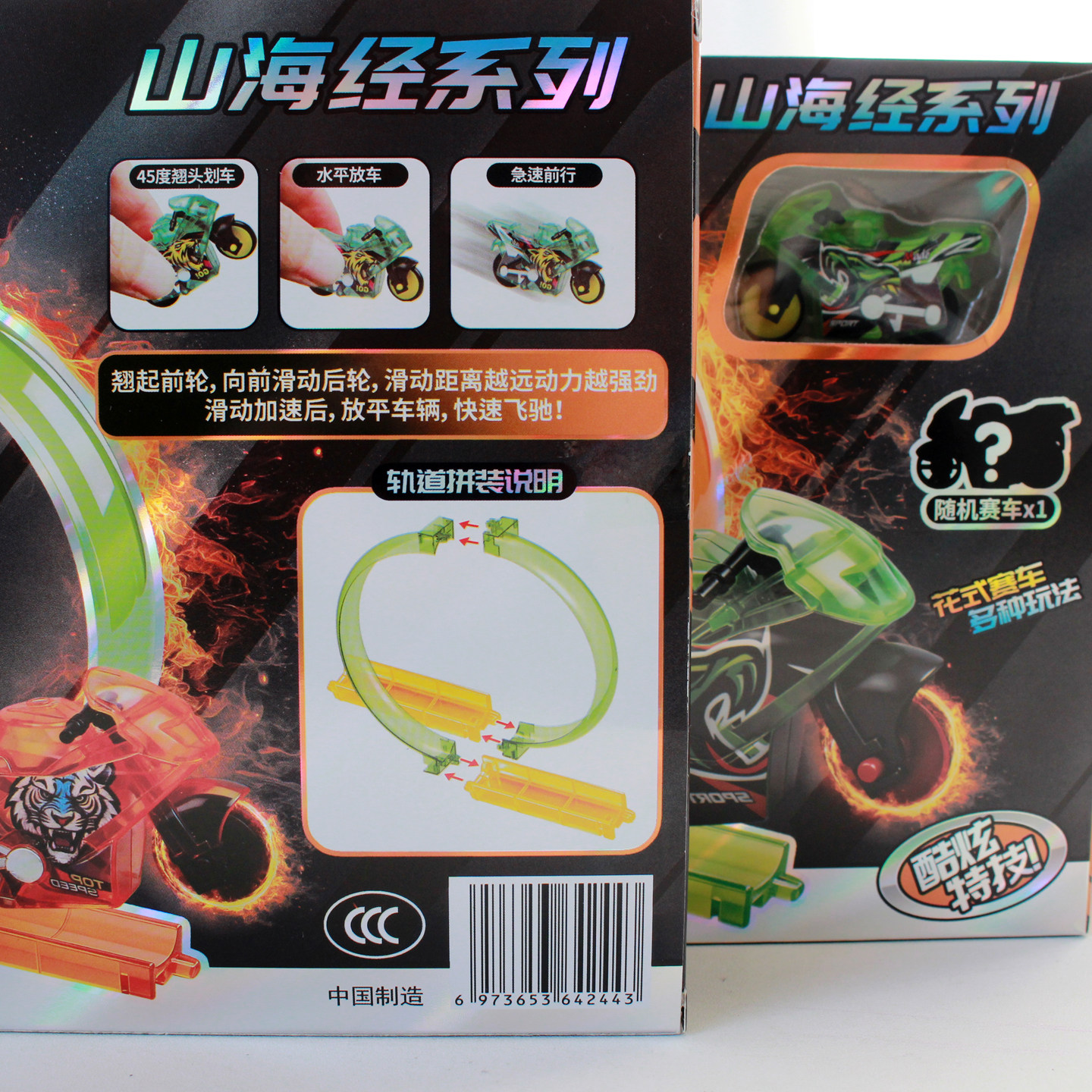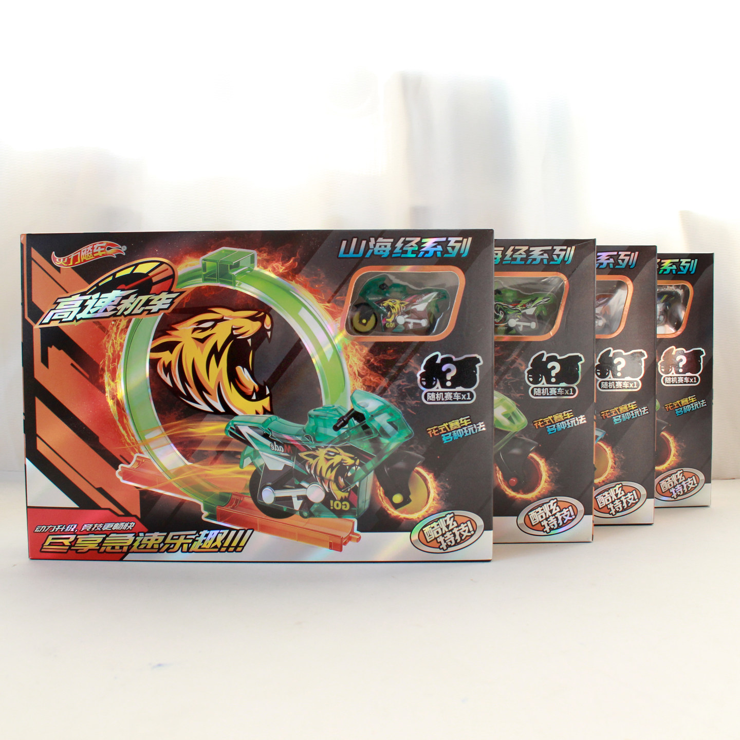 📚 急速轨道摩托车比赛儿童玩具一路火花机车模型山海经系列花式赛车