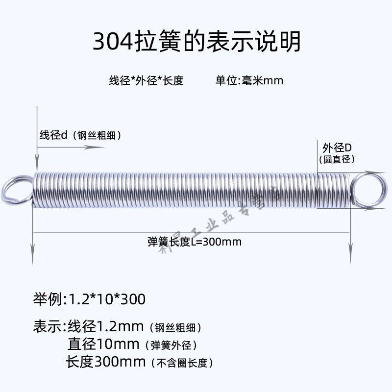 📚 304不锈钢拉簧弹黄300长拉力拉伸弹簧闭口拉簧0.3J/0.9/1.00.3*3*