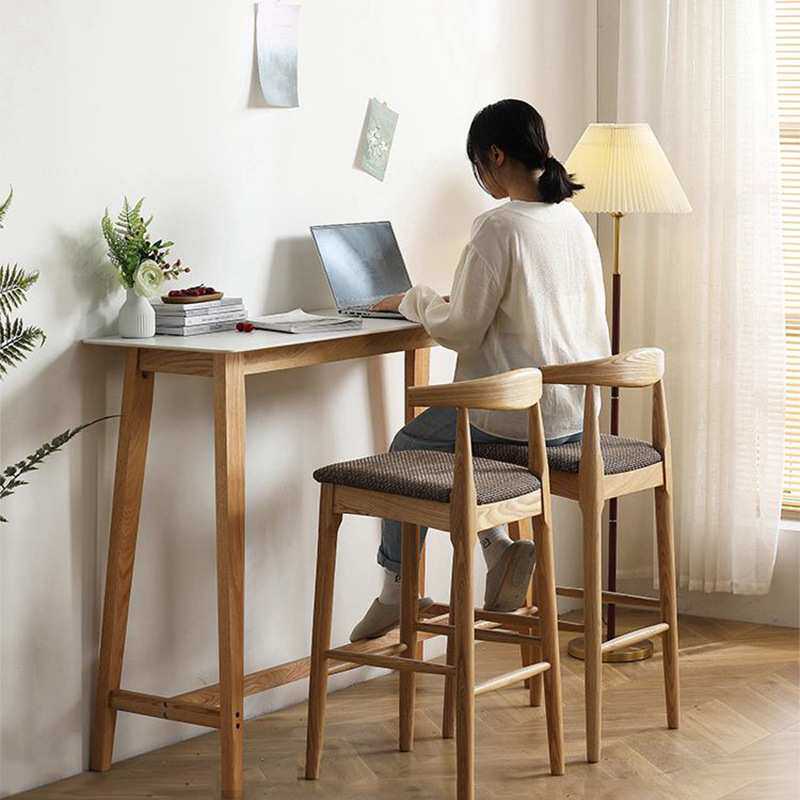 📚 实木高吧椅日式岛台吧凳现代简约北欧牛角椅家用靠背高脚吧台椅子
