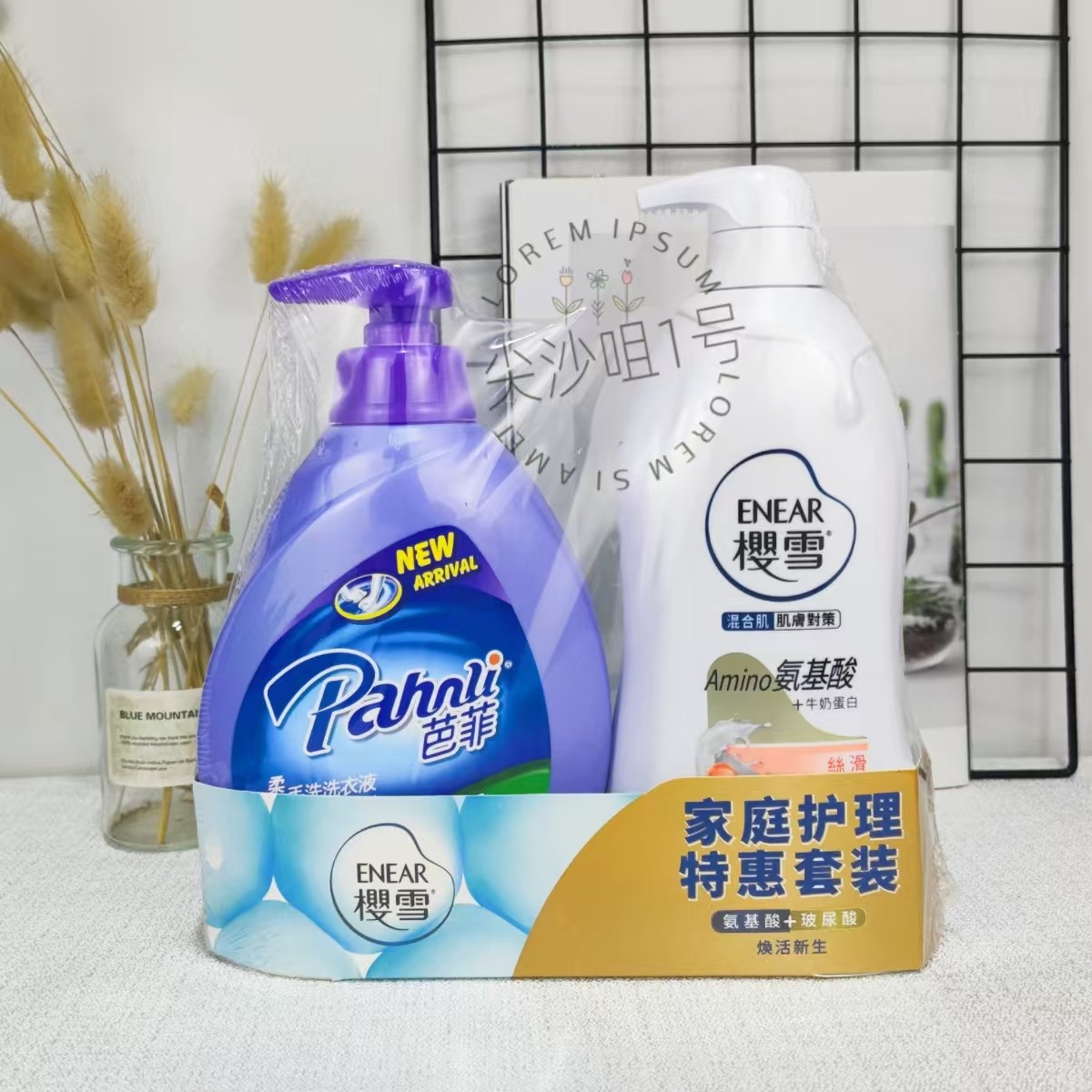 📚 新包装港版樱雪沐浴露套装1000ml芭菲900ML洗衣液沐浴露四选一