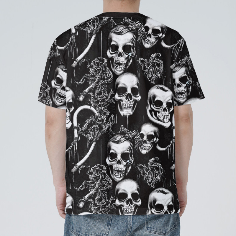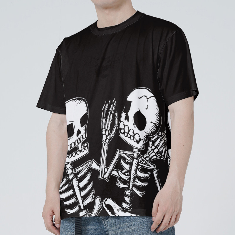 📚 大码骷髅头痞帅速干男款t恤短袖青少年夏季潮牌圆领上衣印花
