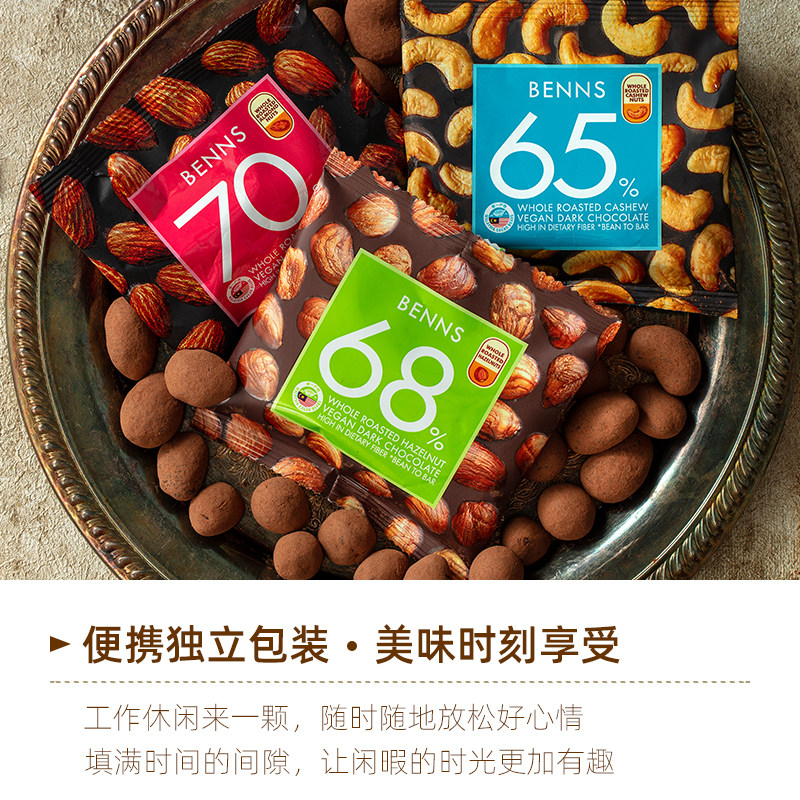 📚 【量贩】BENNS贝纳丝果仁坚果巧克力黑巧纯可可脂进口黑巧450g