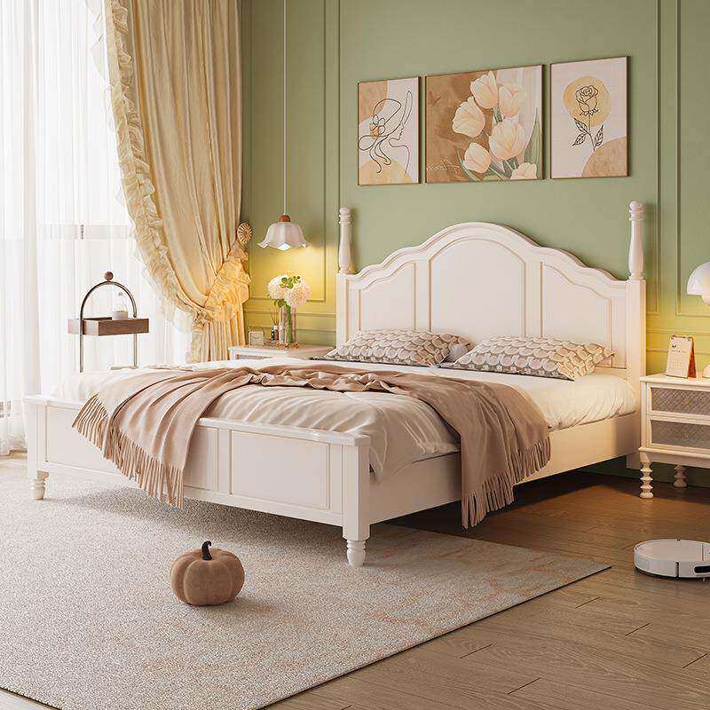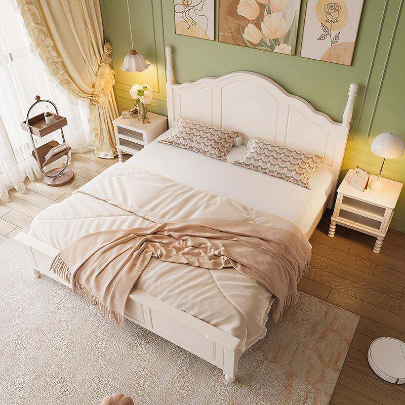 📚 VBI法式米奶油风实木主床大简约现代18床架1.5m女生卧室白色美式