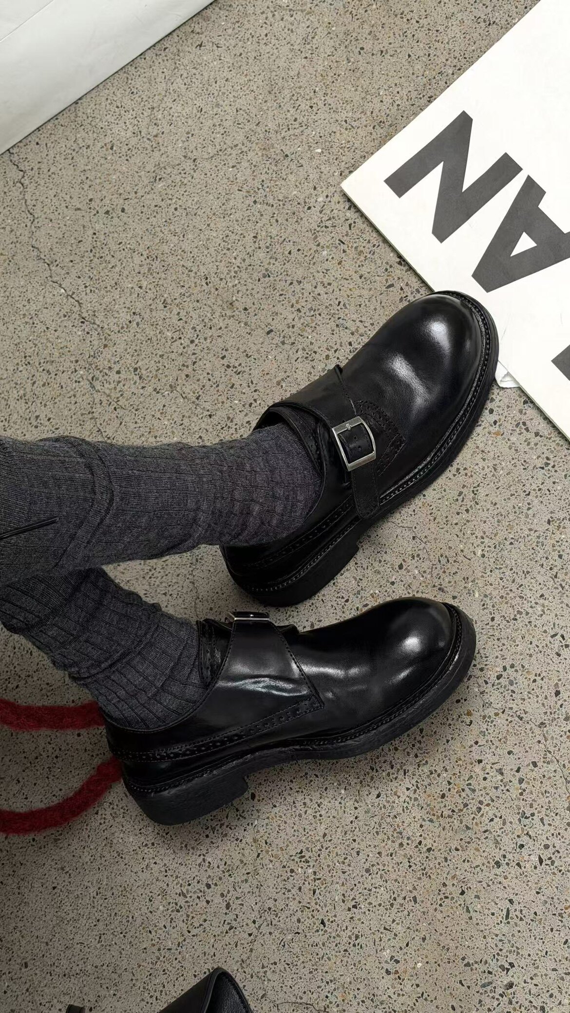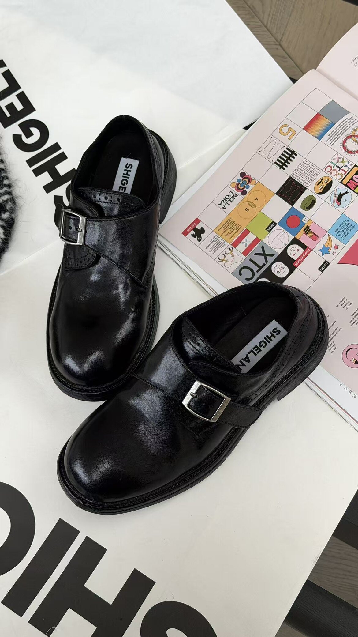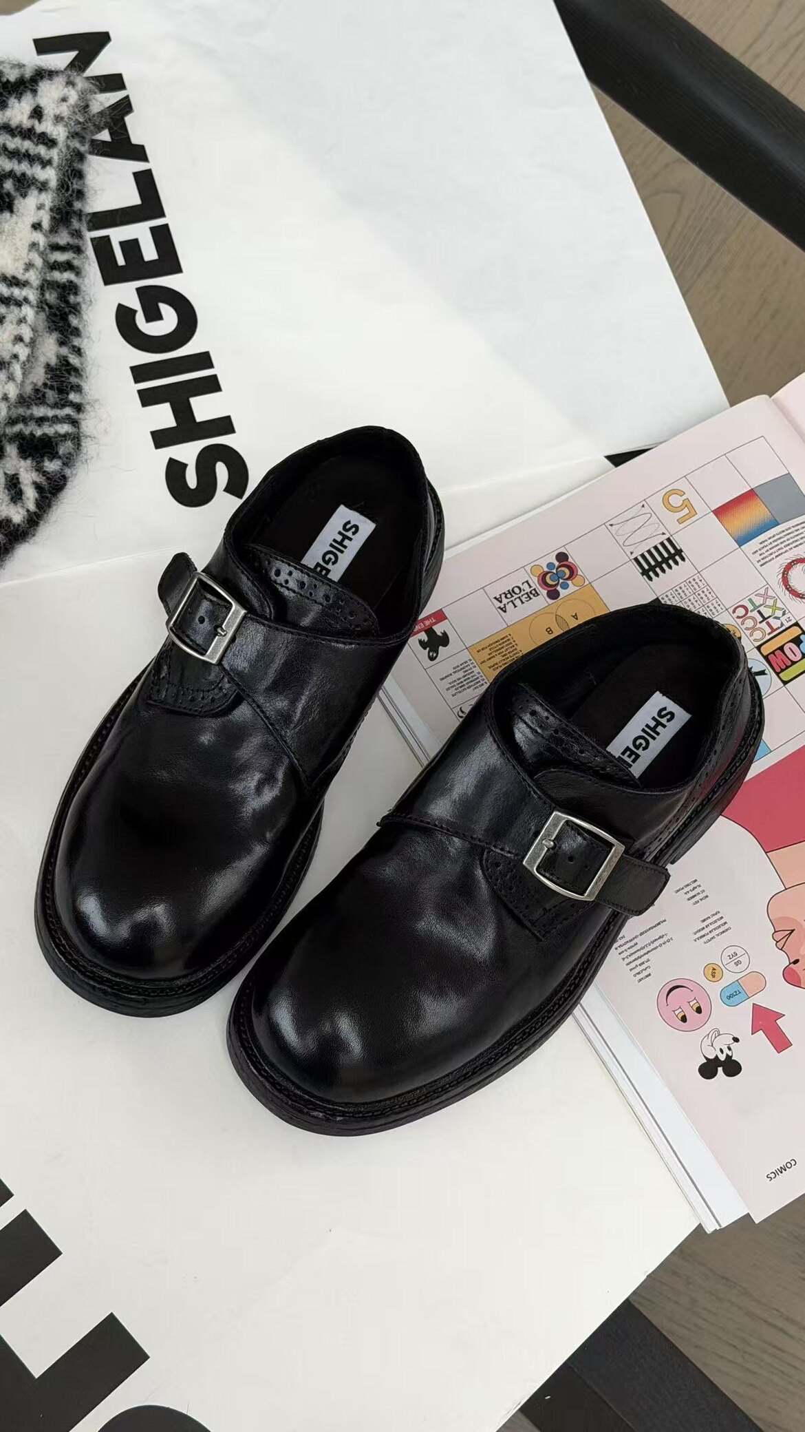 📚 诗歌兰欧洲站真皮女鞋2026春款时尚百搭粗跟一脚蹬乐福鞋单鞋皮鞋