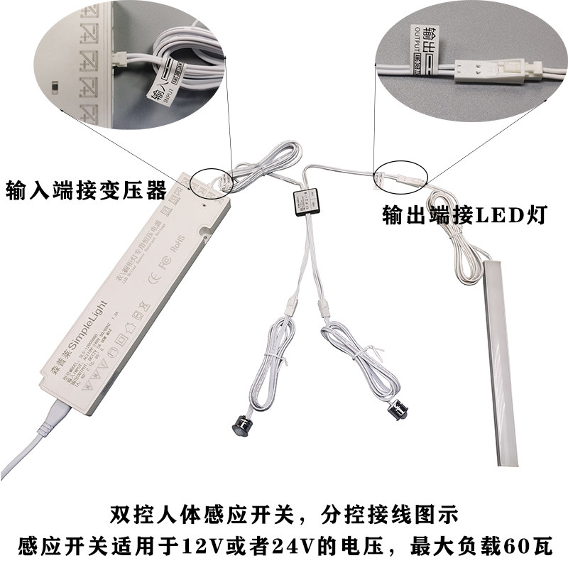 📚 12V24V双头双控人体感应开关可选延时夜灯悬浮床下床灯亮渐亮渐灭