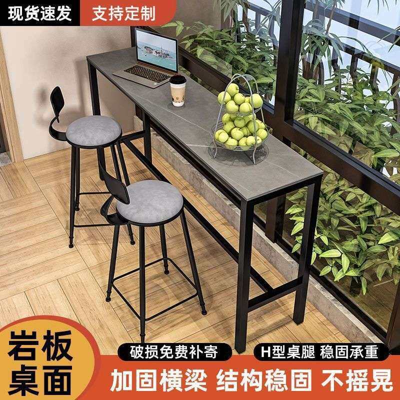 📚 岩板靠墙吧台桌靠窗长条桌吧台长条窄桌子高脚桌子阳台休闲小吧台
