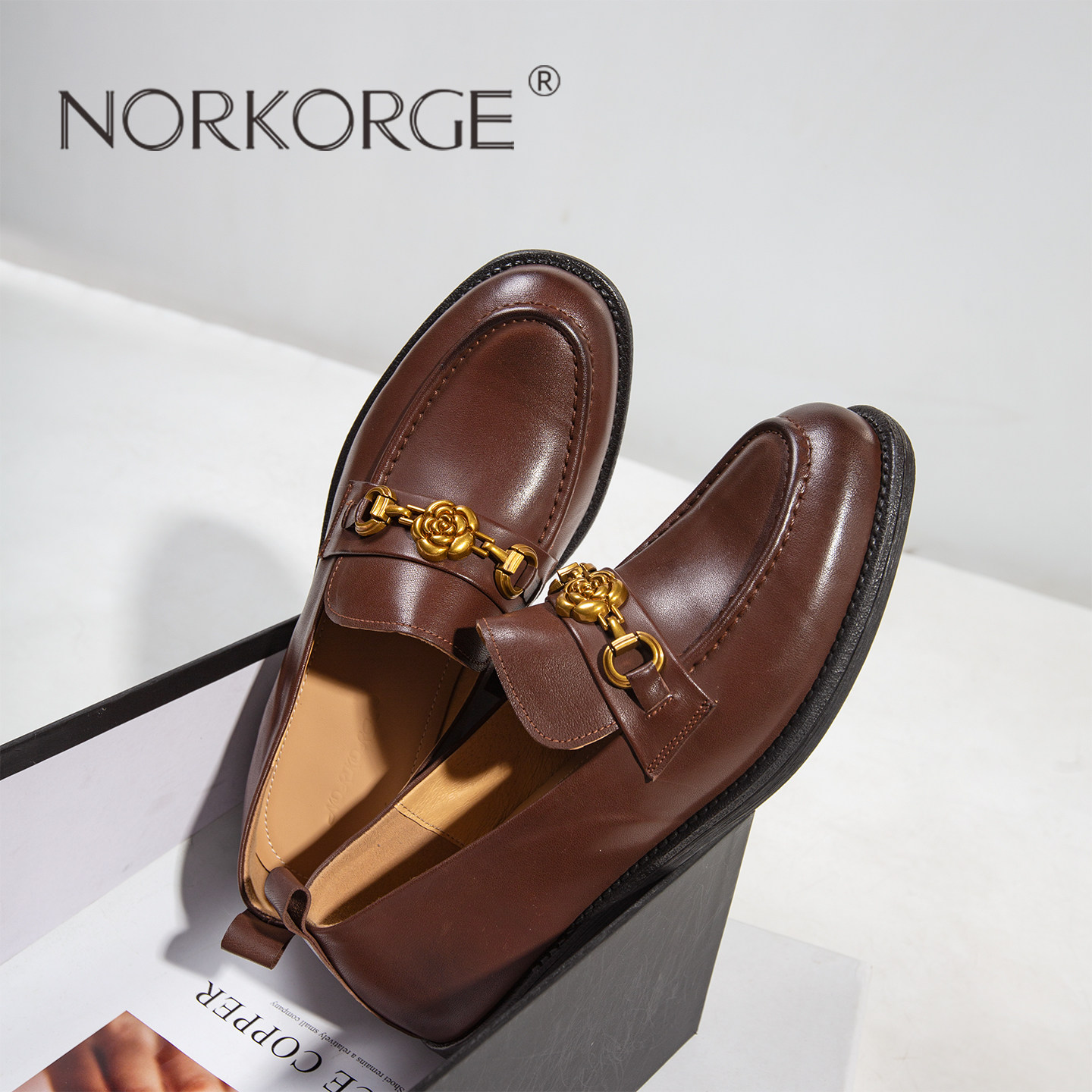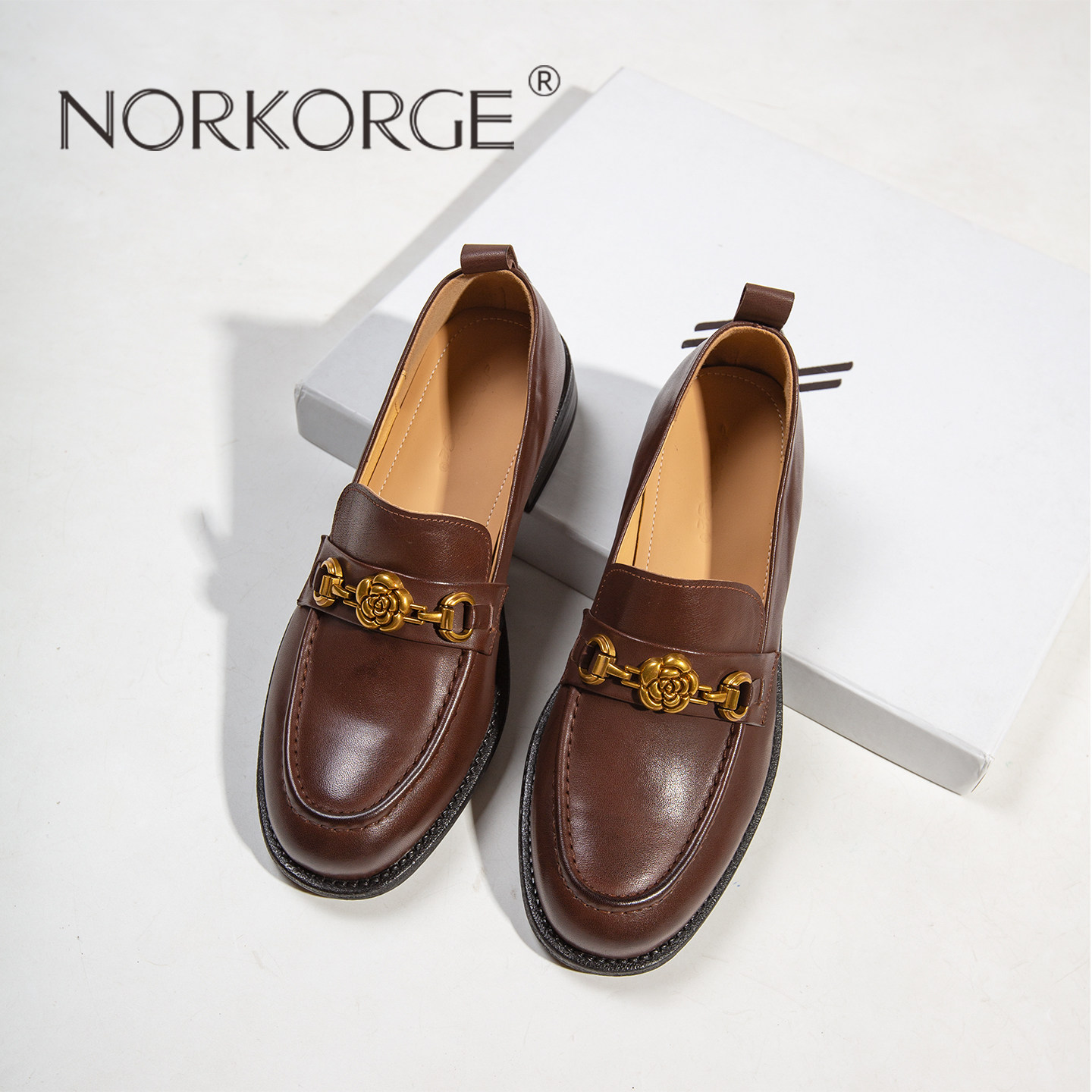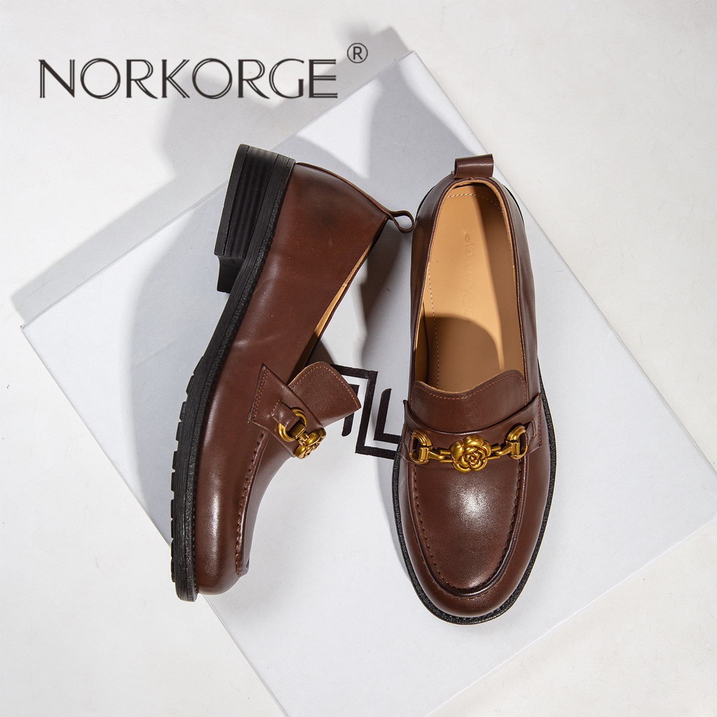 📚 2026新款秋法式复古小皮鞋真皮粗跟软面平底低跟乐福鞋棕色一脚蹬