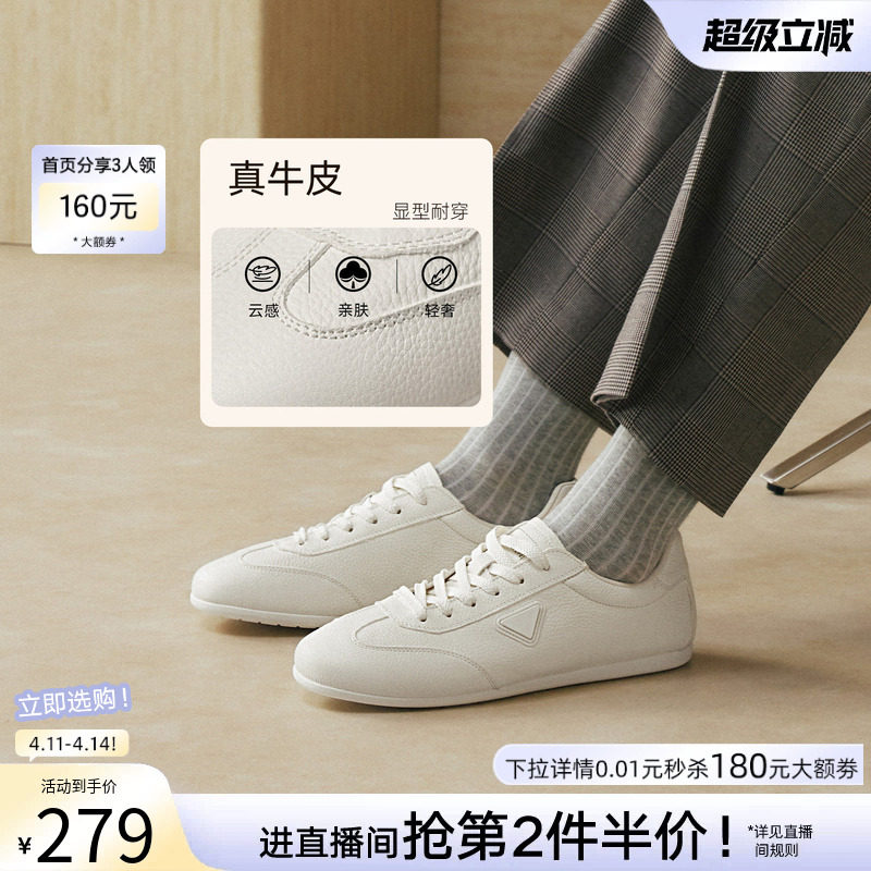 📚 百思图26春季新款轻便德训鞋时尚小白鞋户外休闲运动男鞋MJ631AM6