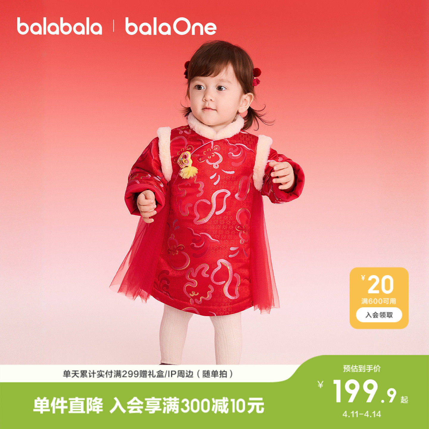 📚 巴拉巴拉童装女童拜年服连衣裙2026春秋装新款红色网纱新中式裙子