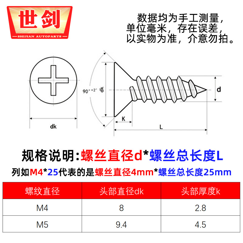 📚 散装加硬彩锌十字沉头自攻螺丝M5M4干壁钉平头木螺丝纤维钉快速丁