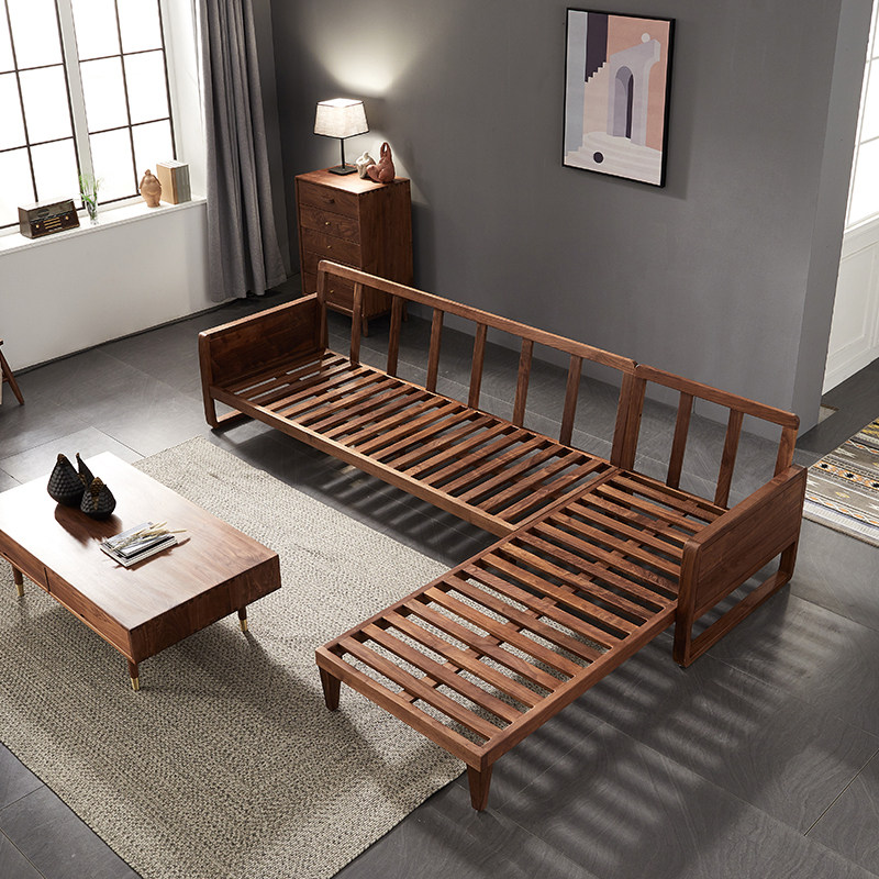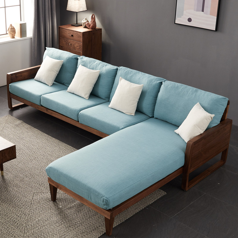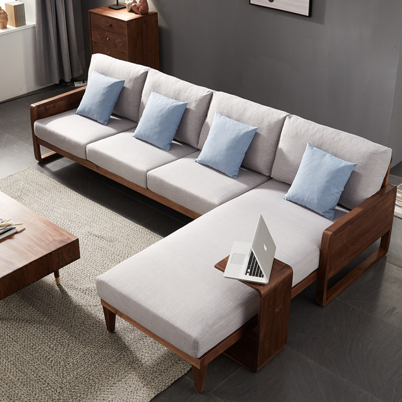📚 北欧风格北美黑胡桃木全实木沙发小户型客厅家具转角组合布艺沙发