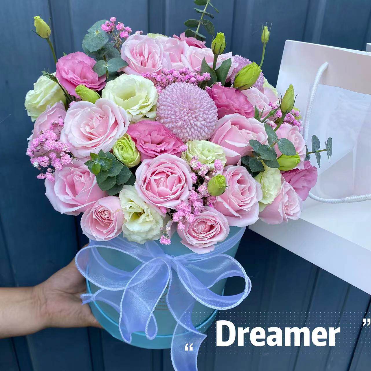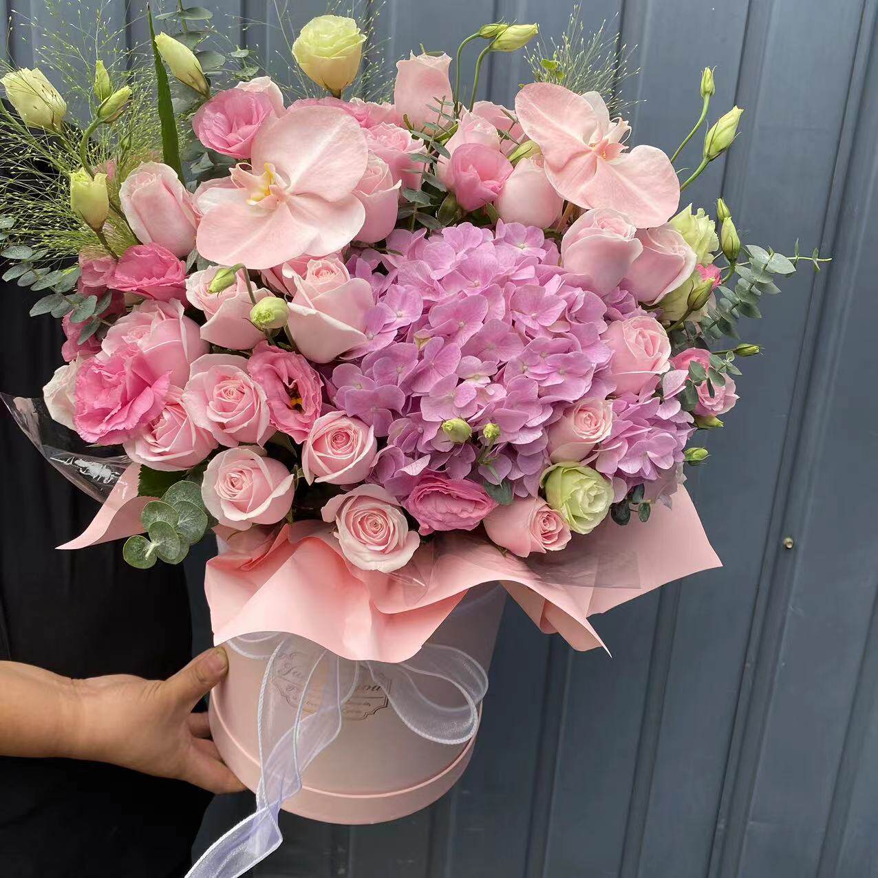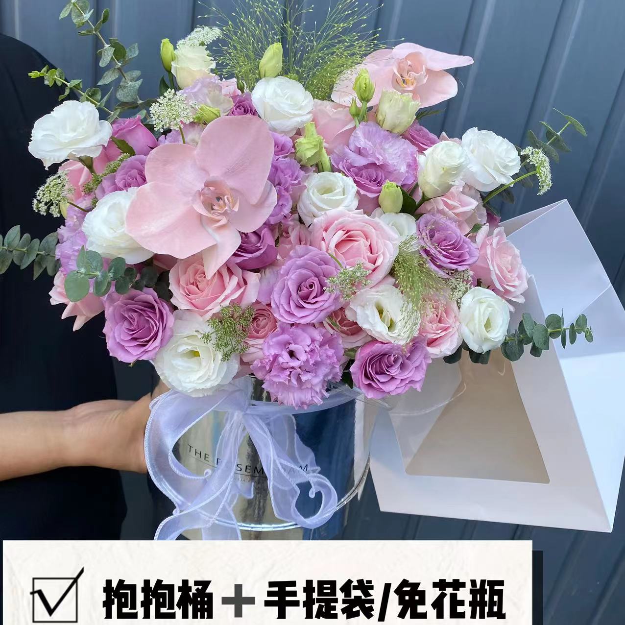 📚 创意网红ins抱抱桶鲜花速递北京同城进口红玫瑰绣球混搭花生日