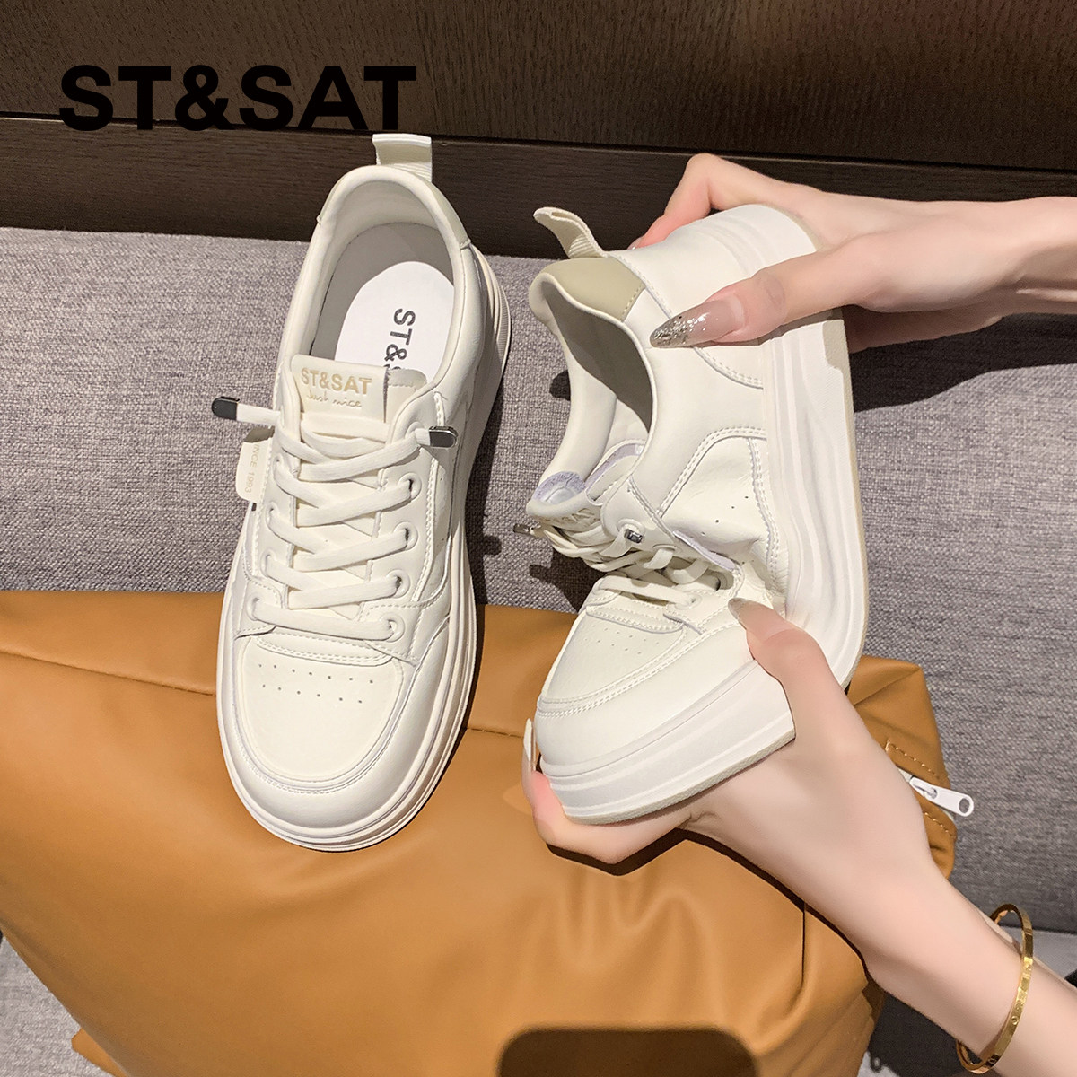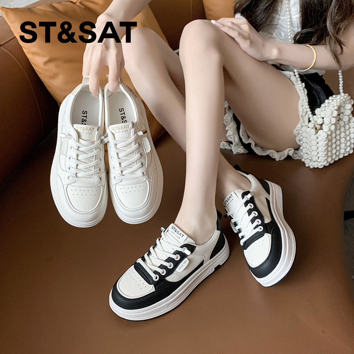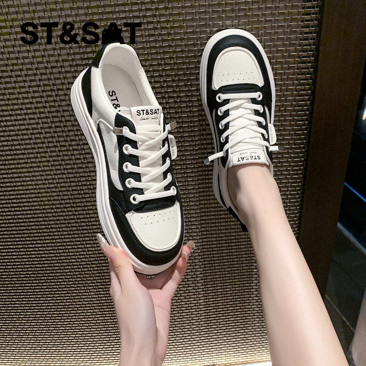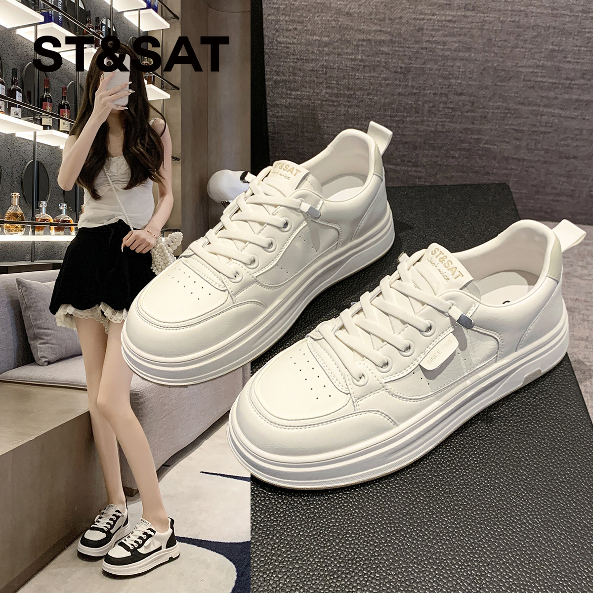 📚 星期六厚底小白鞋女2025新款夏季百搭松紧带懒人鞋学生板鞋休闲鞋