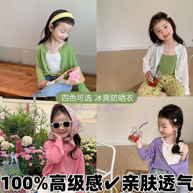 📚 儿童开衫女孩时尚薄款防晒衣女宝宝纯色外套女童韩版空调衫针织女