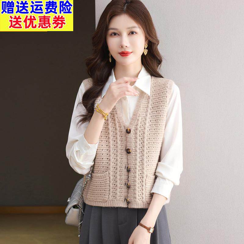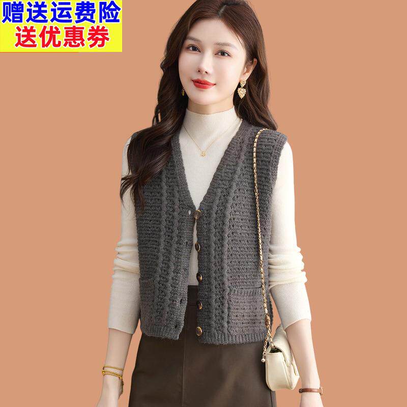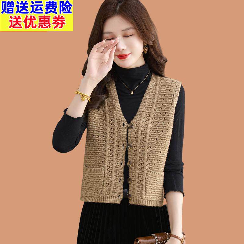 📚 羊毛粗针织马甲女2025秋季新款时髦洋气无袖背心外搭坎肩毛衣外套