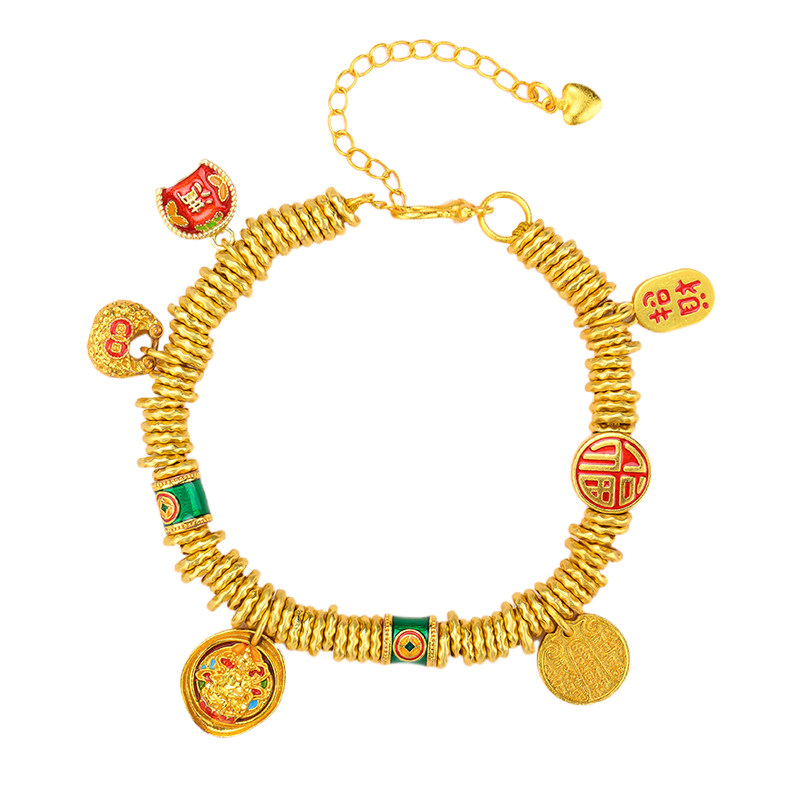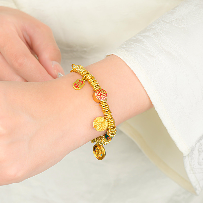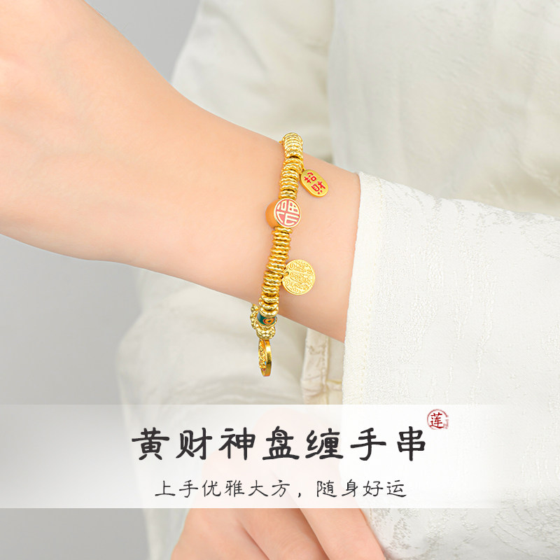📚 金色珐琅黄财神小胖福盘缠手链招财手串轻奢时尚气质送女朋友礼物
