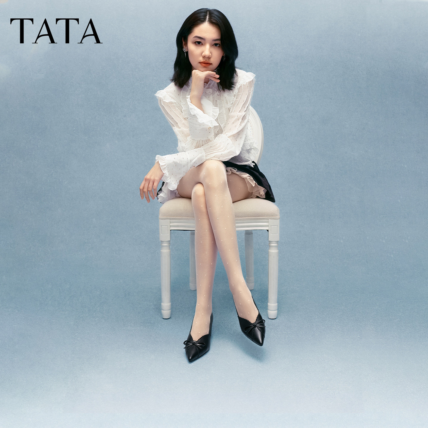 📚 TATA他她月光同行羊皮尖头高跟鞋女春季百搭女鞋中高单鞋UZG02AQ6