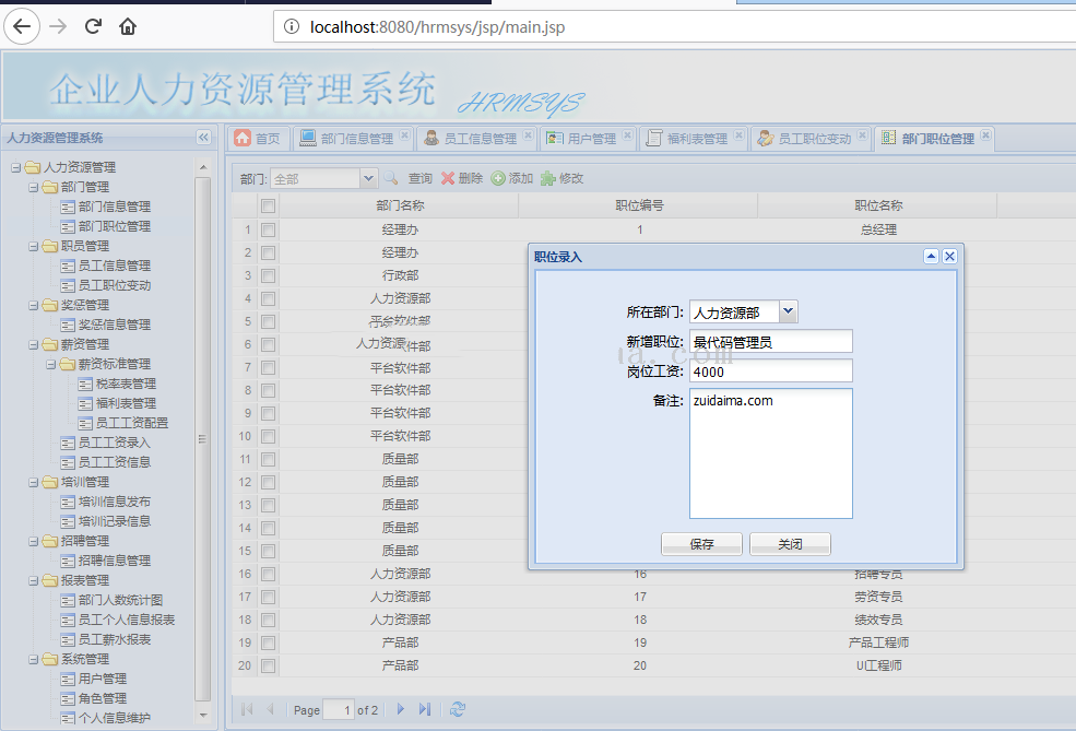 📚 JSP企业人力资源管理java web项目SSH+EXTJS+MySQL人事管理系统