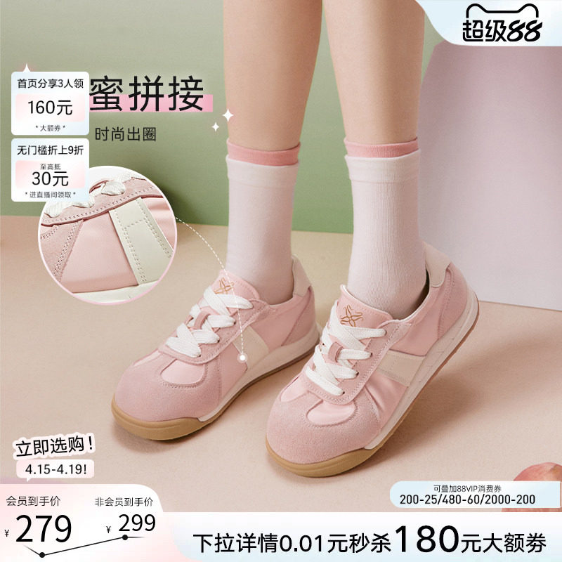 📚 【桃之夭夭】百思图26春商场新款芭蕾德训鞋厚底女运动休闲小白鞋