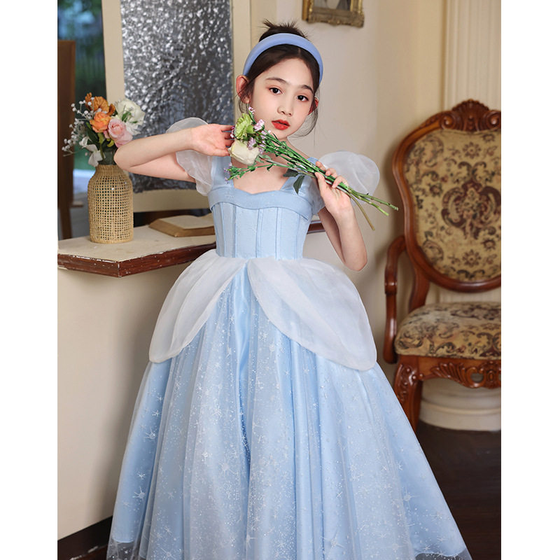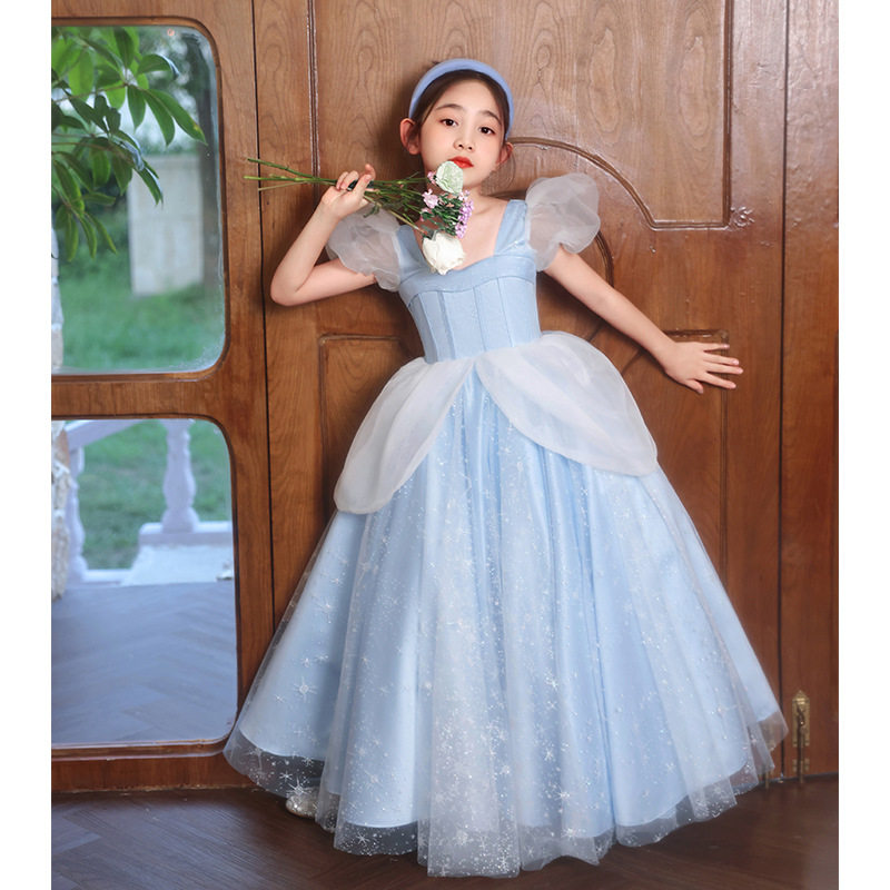 📚 高端原创儿童礼服公主裙生日蓝色唱歌朗诵女童主持人钢琴演奏花童