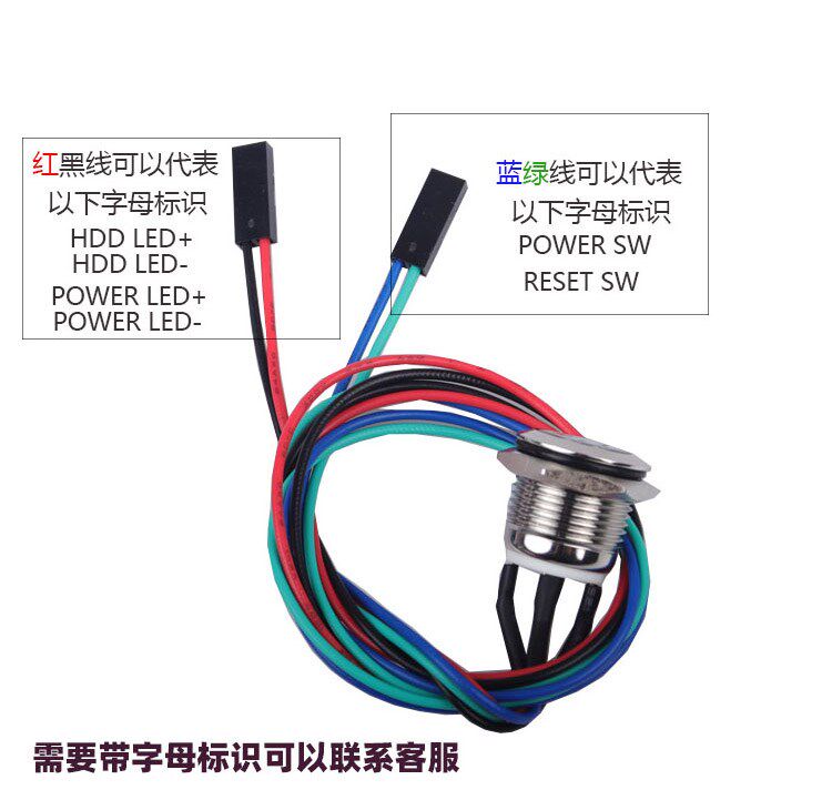 📚 定制带60cm线金属按钮开关改装电脑主机箱重启动复位开机键LED灯