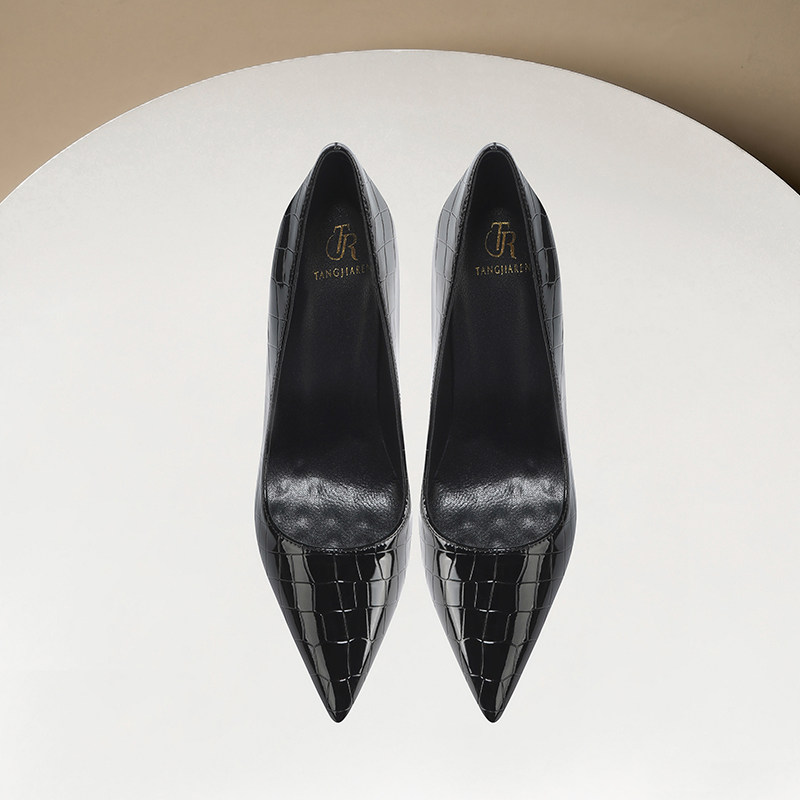 👠时尚新宠!试穿今日种草的“鳄鱼纹黑色高跟鞋女细跟2025新款”🦈,简直是御姐的完美选择!