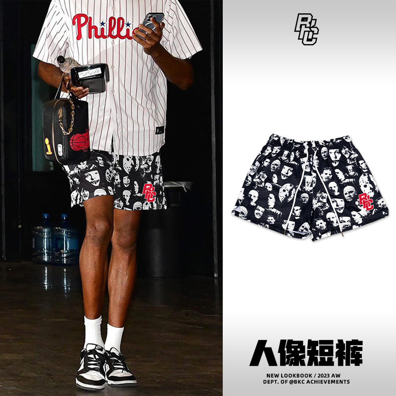 📚 bkcxzice破冰正品人像短裤男美式篮球四分裤夏季透气速干运动裤子