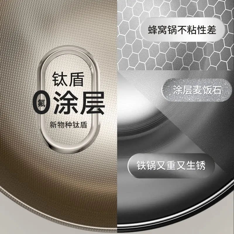 📚 荣事达不粘锅炒锅家用炒菜锅平底电磁炉燃气灶专用有钛不锈钢锅具