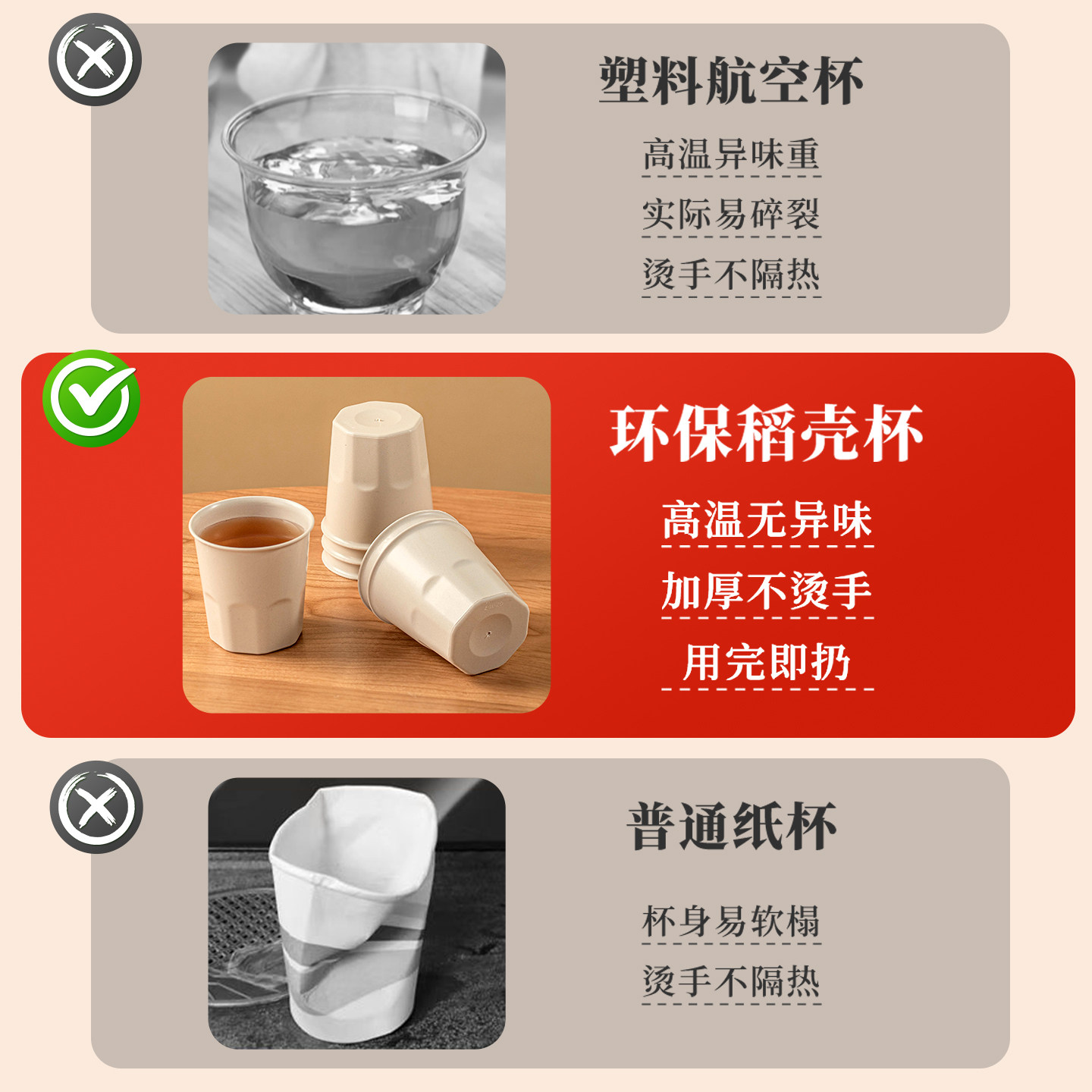 📚 稻壳一次性杯子茶杯食品级家用水杯功夫杯子加厚耐高温硬质可降解