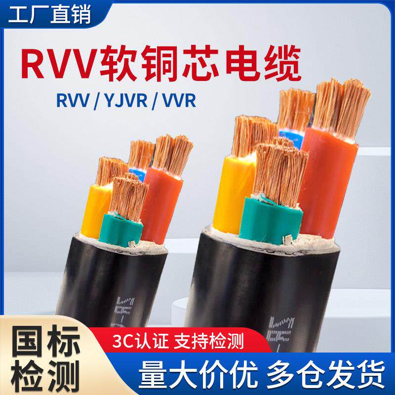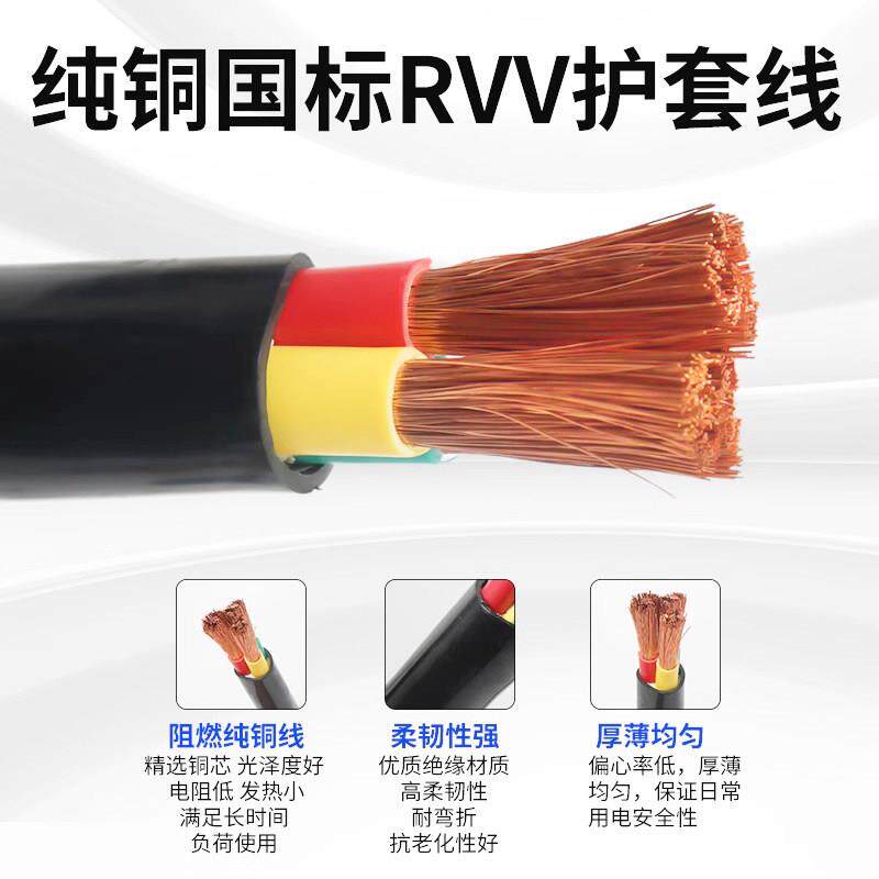 📚 国标rvv铜芯软电线电缆2 3 4 5芯10 16 25 35 50平方户外三相四线