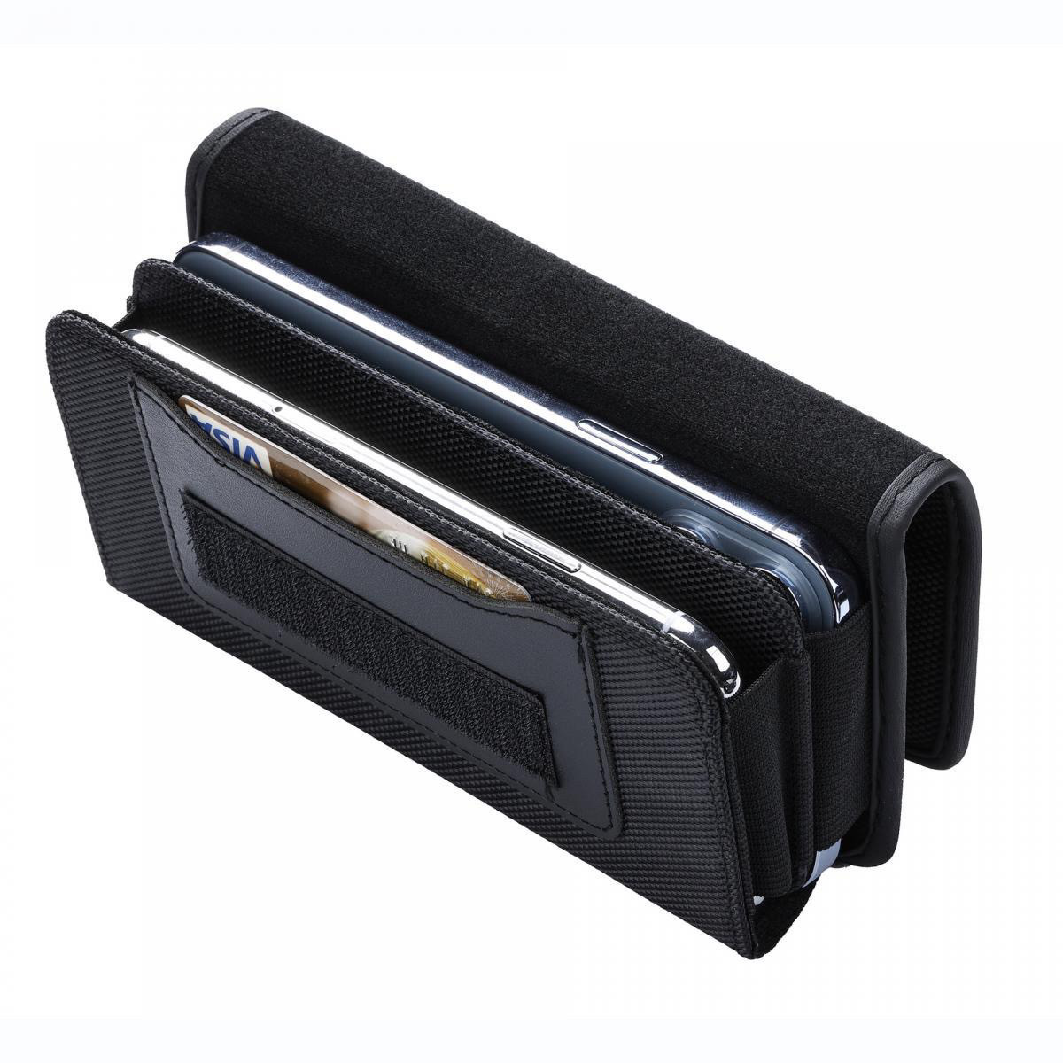 📚 横款黑色双层穿皮带挂腰手机包腰套牛津布男士腰间夹裤带插卡皮套