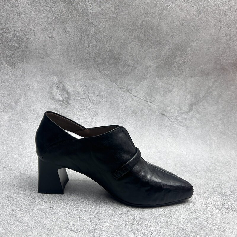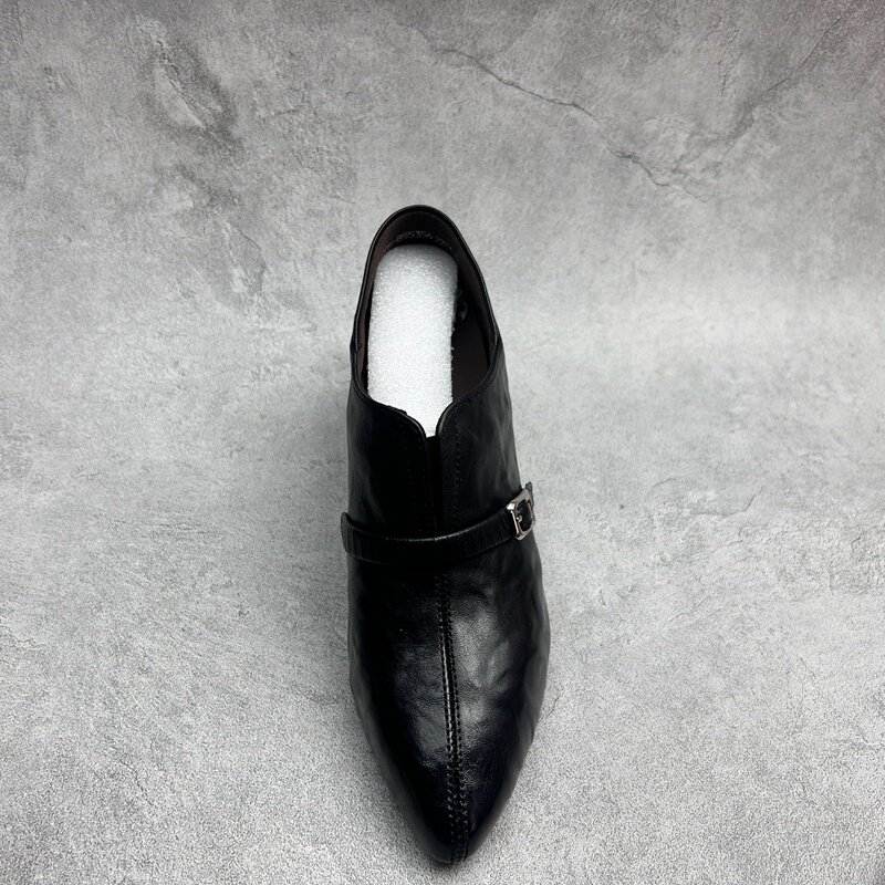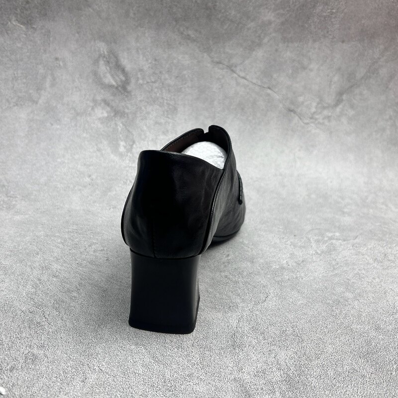 📚 2026春季新款真皮新款女鞋高粗跟休闲深口时尚牛皮百搭套脚女单鞋