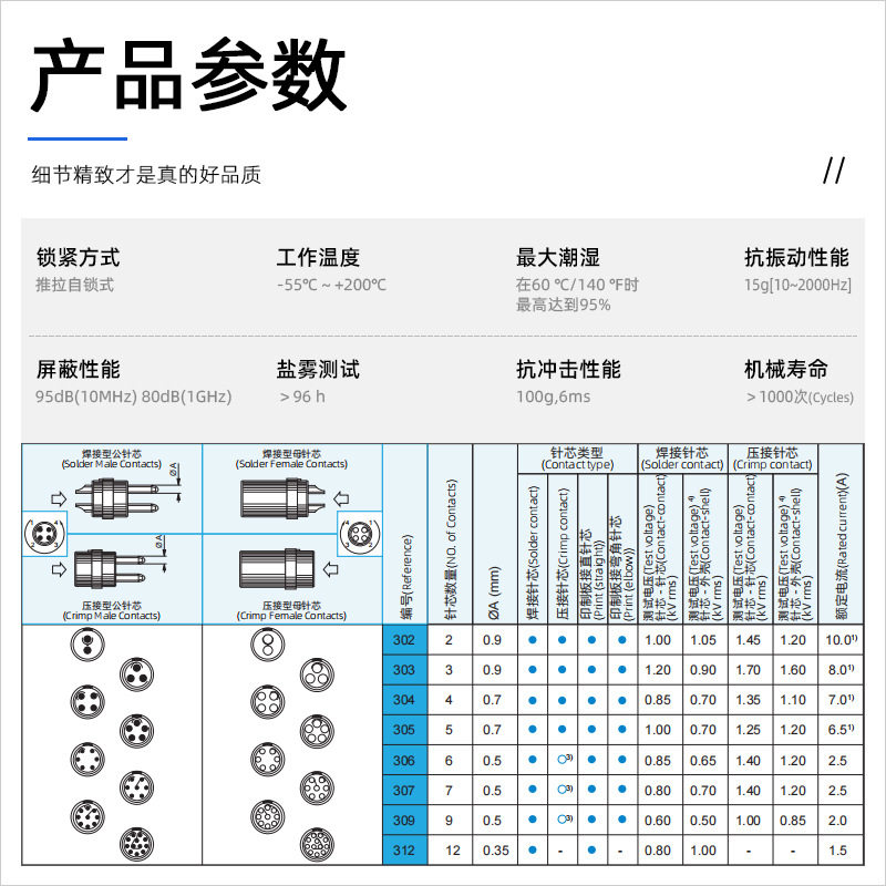 📚 0T推拉自锁连接器TGG圆形直插头2PIN 9芯MEG固定IP68浮动插座