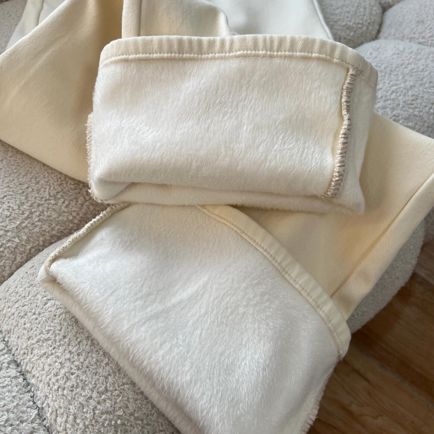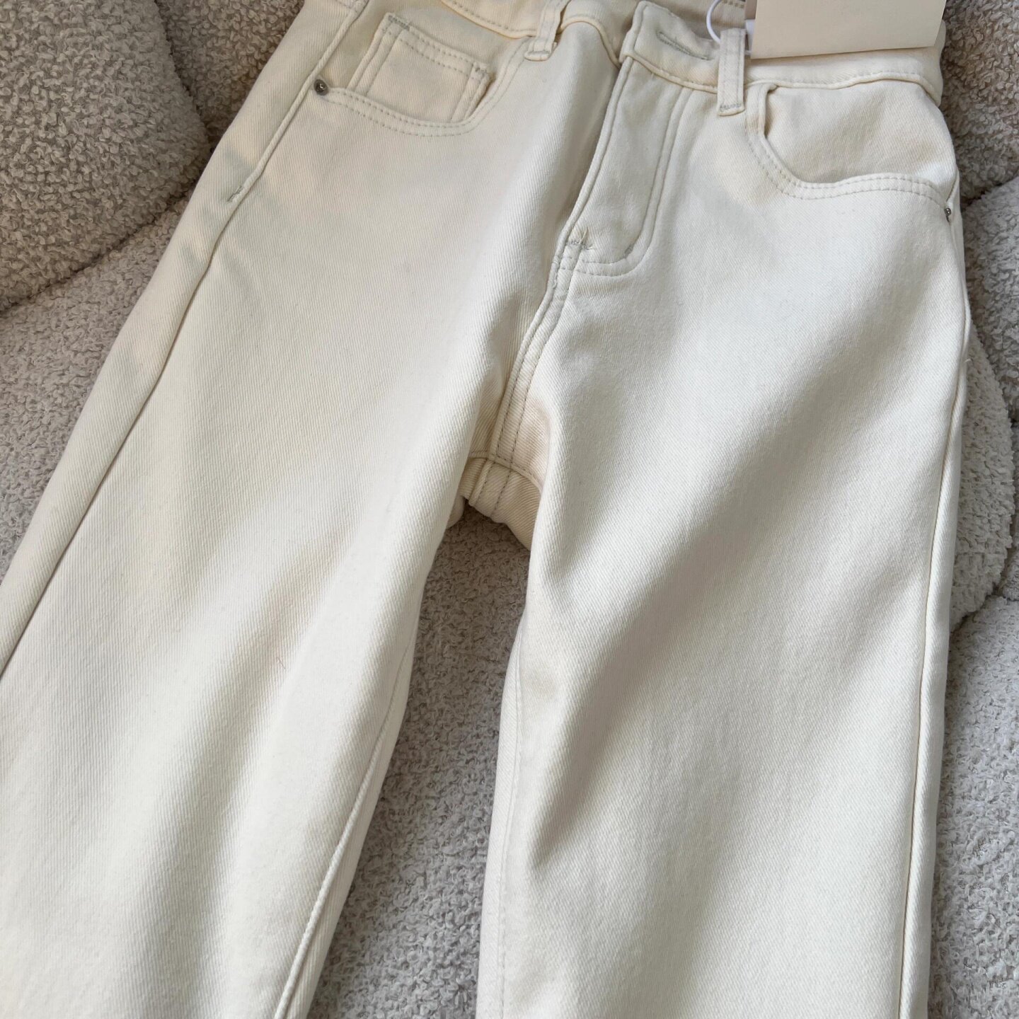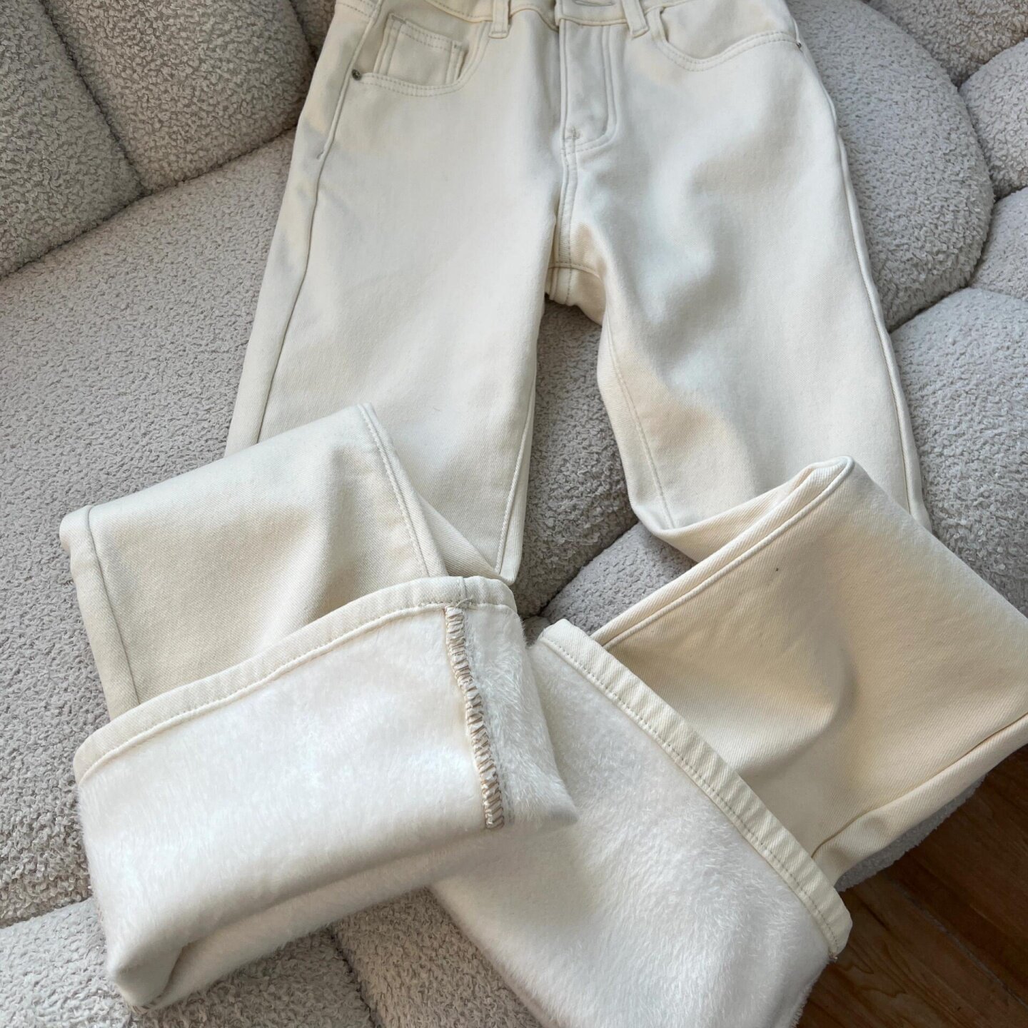 📚 米白色加绒保暖微喇叭牛仔裤女秋冬新款高腰弹力显瘦小个子马蹄裤