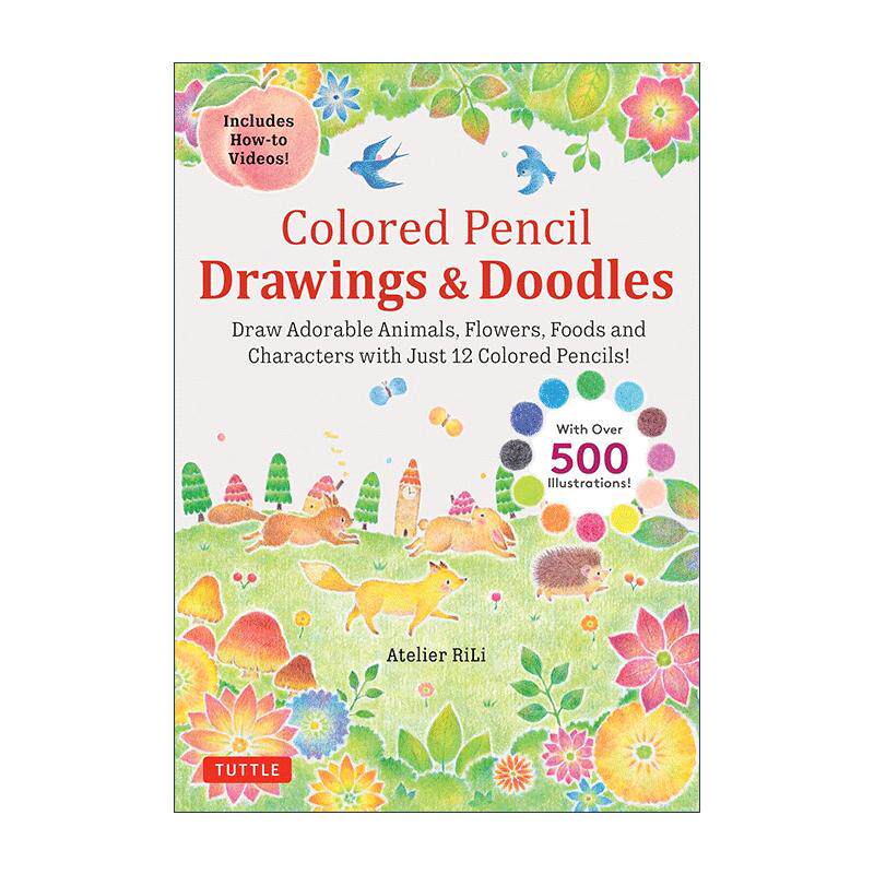 📚 英文原版 Colored Pencil Drawings and Doodles 彩色铅笔绘画与涂鸦插图指南 可爱动物 花卉 食物与人物 英文版进口英语原版书籍
