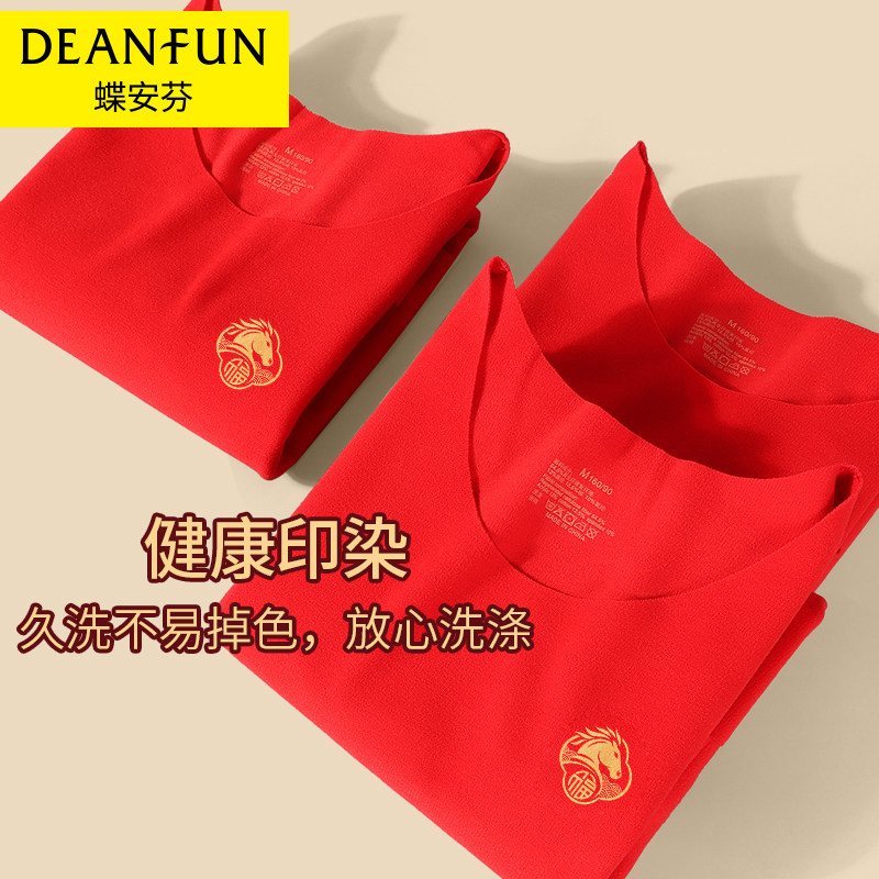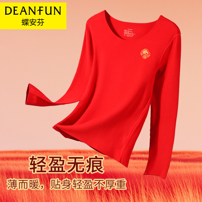 📚 本命年发热打底衫女低领无痕保暖内衣加绒红色秋衣好运属马秋冬季