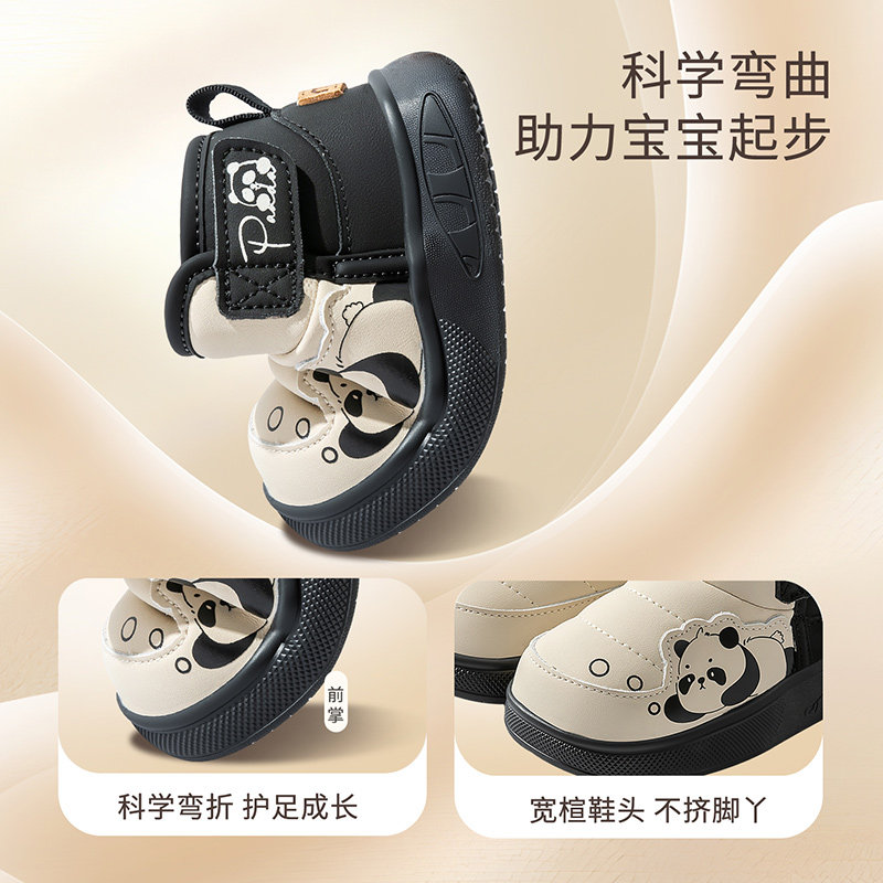 👀入手这款靴子的瞬间,就被它可爱又实用的设计所吸引。卡通熊猫的图案超级吸引小朋友的眼球,而魔术贴设计更是增添了几分童趣。最重要的是,它真的是一款冬日必备的学步鞋!