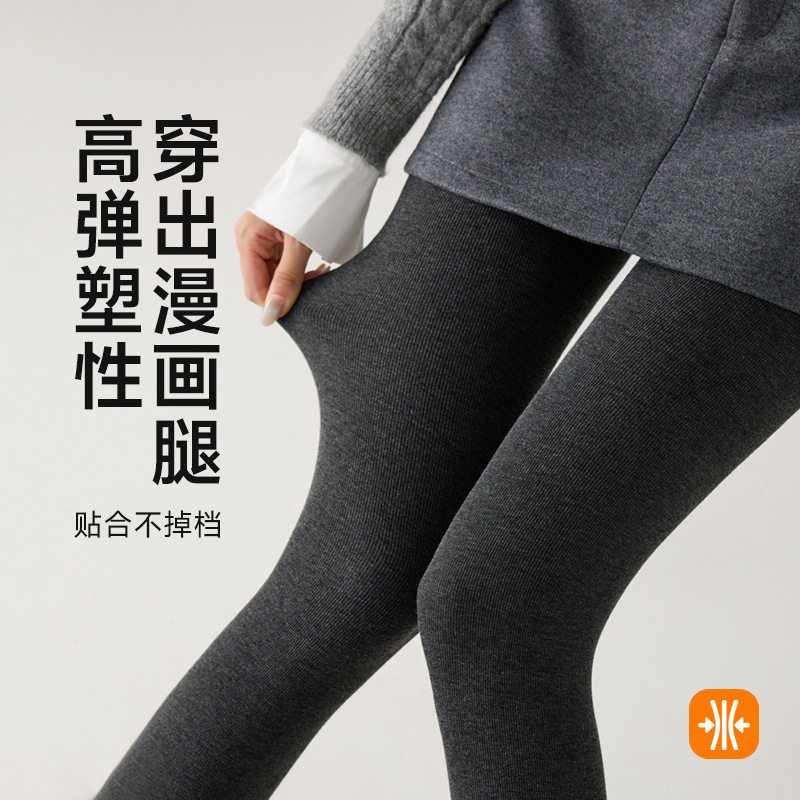 📚 小辣椒 miu系厚黑细竖条纹显瘦灰色打底裤秋冬一体加绒加厚连裤袜
