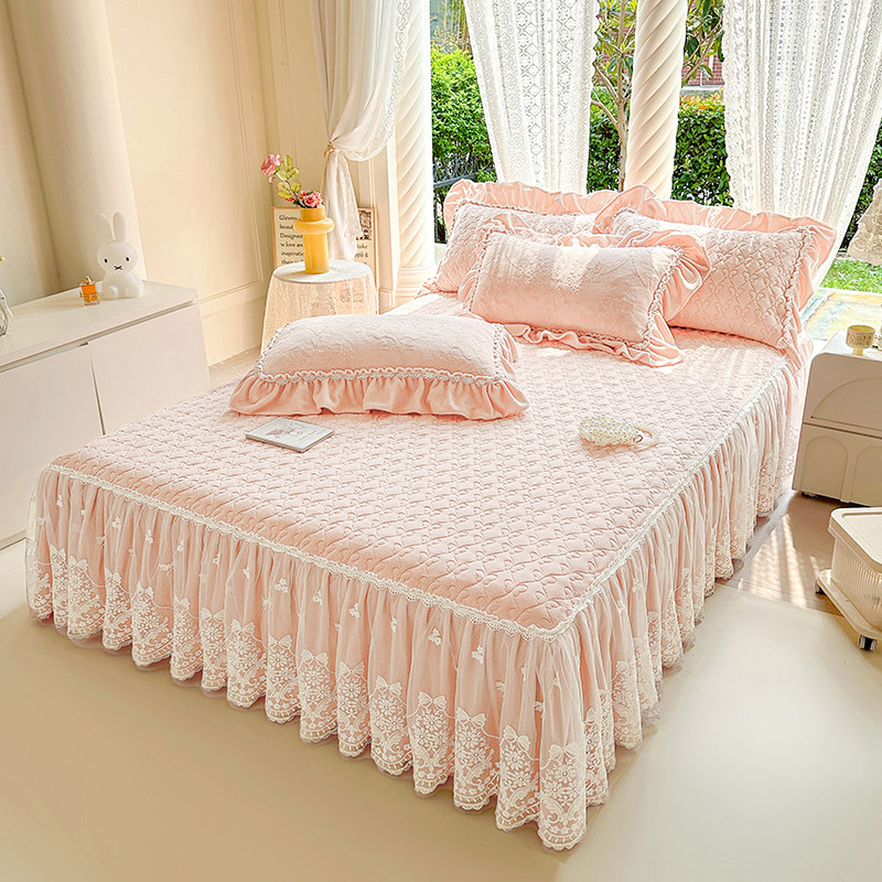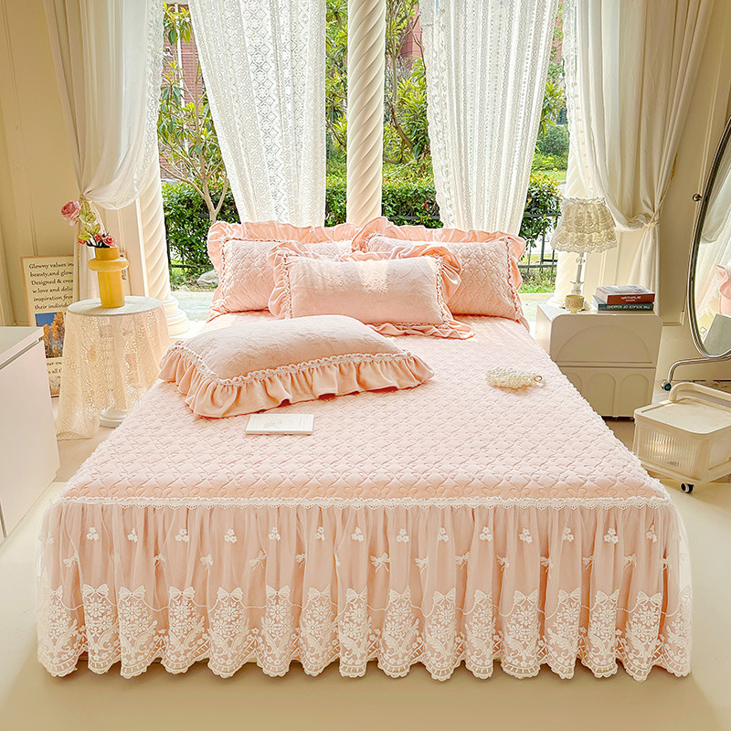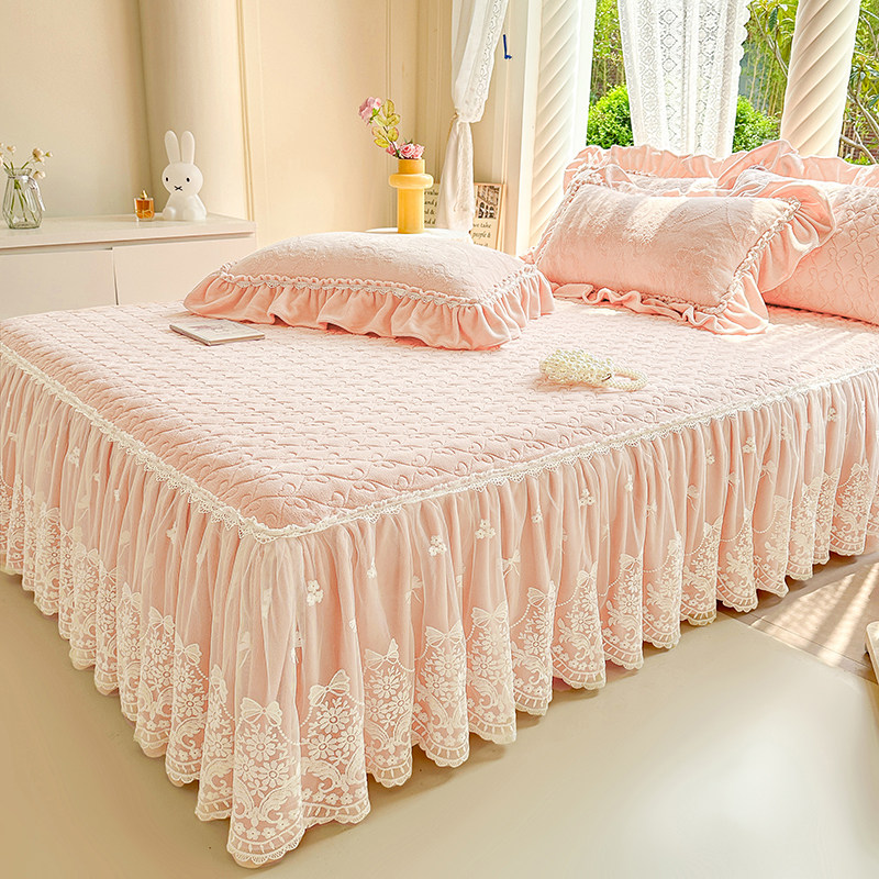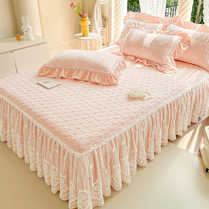 📚 清新公主风蕾丝床裙三件套加厚夹棉韩式牛奶绒床罩冬季保暖床垫套