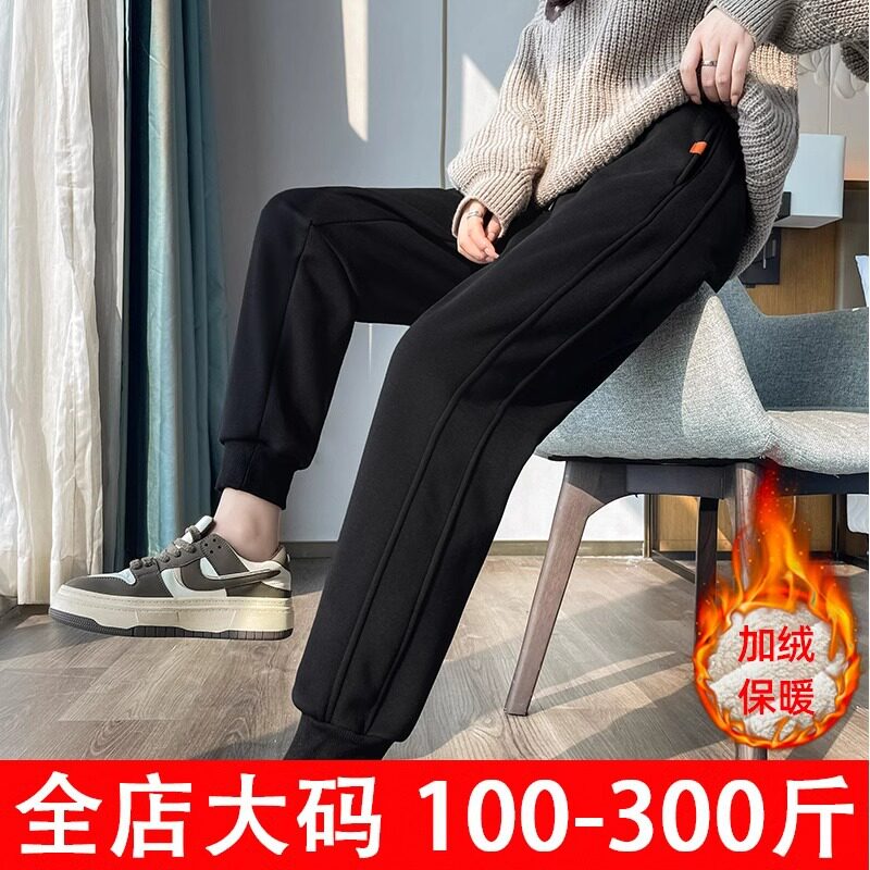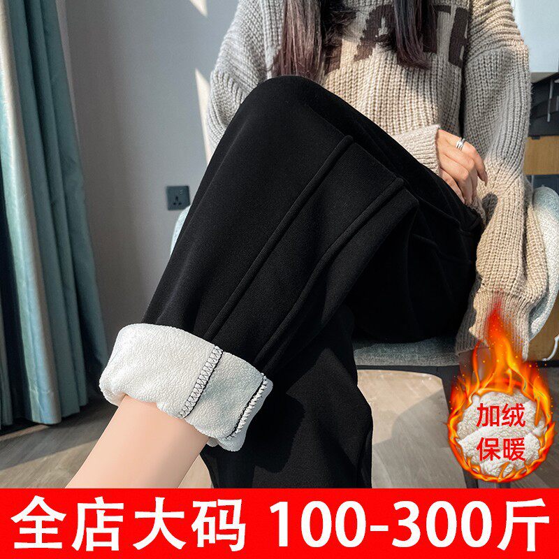 📚 特大码200斤冬季胖mm宽松休闲运动裤高腰显瘦卫裤加绒加厚加长裤