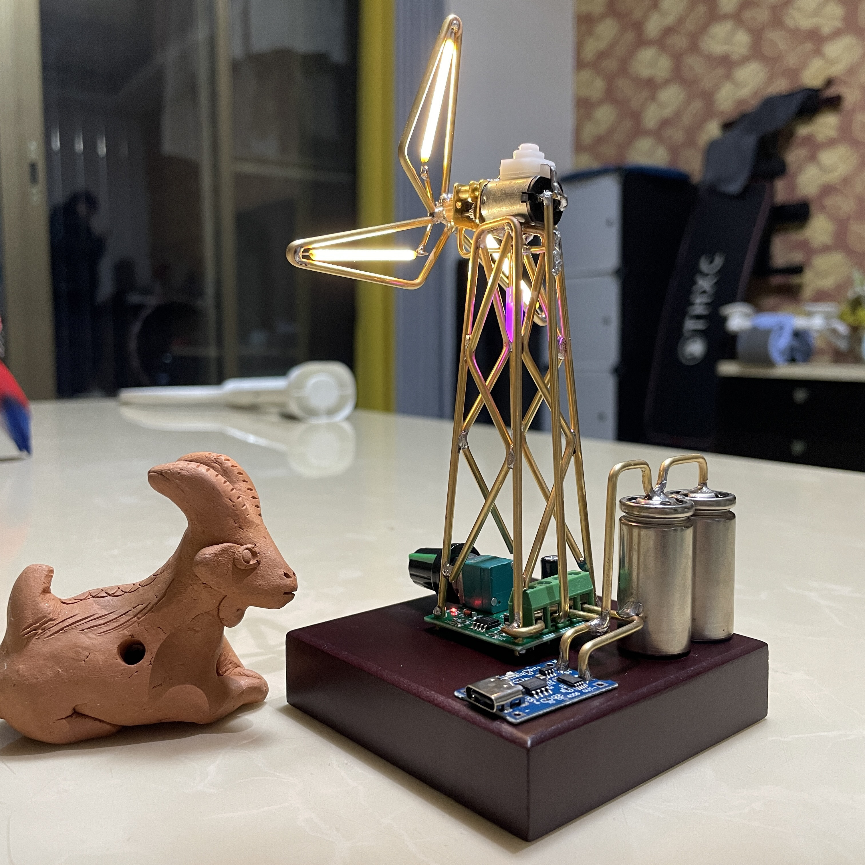 📚 成型风车灯diy粗铜丝已折好电机单独关可充电风台灯材料包