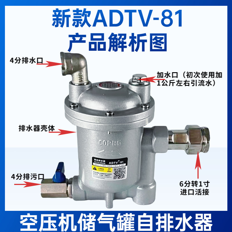 📚 升级款ADTV-81空压机储气罐自动排水器 DN20气动抗堵免维护疏水阀